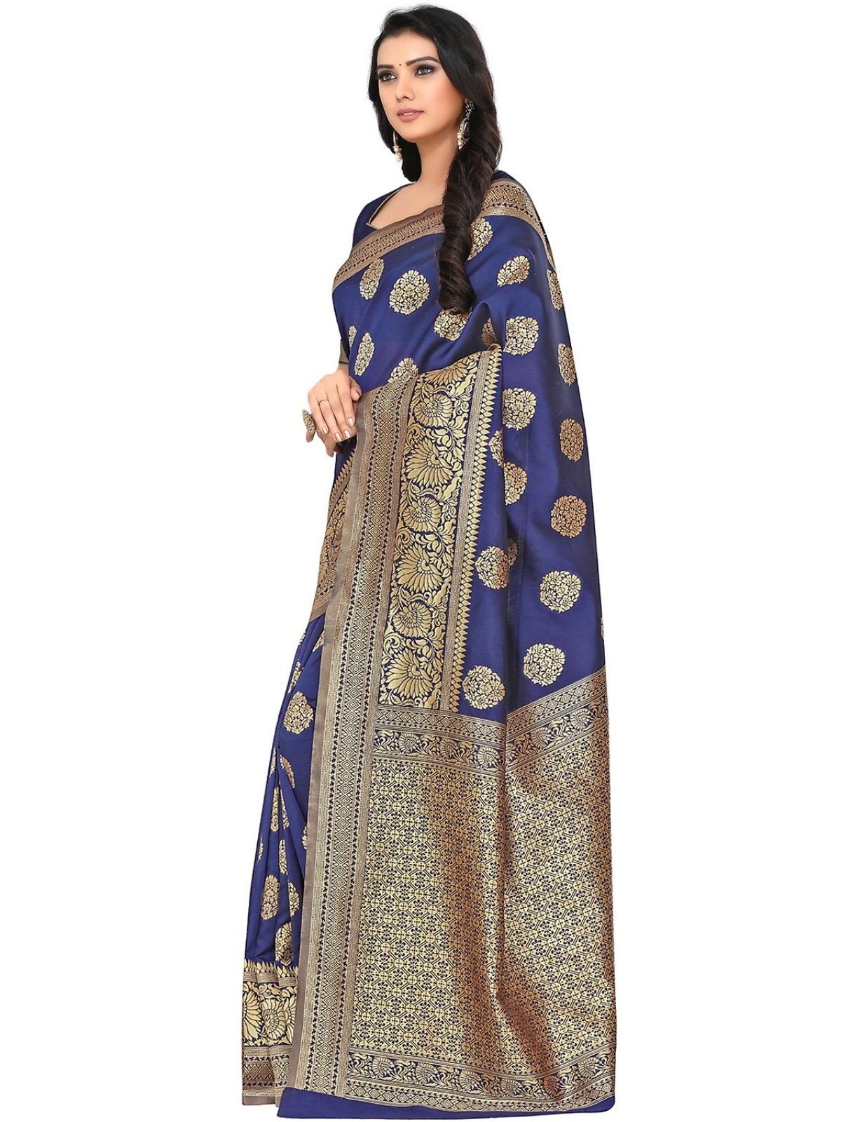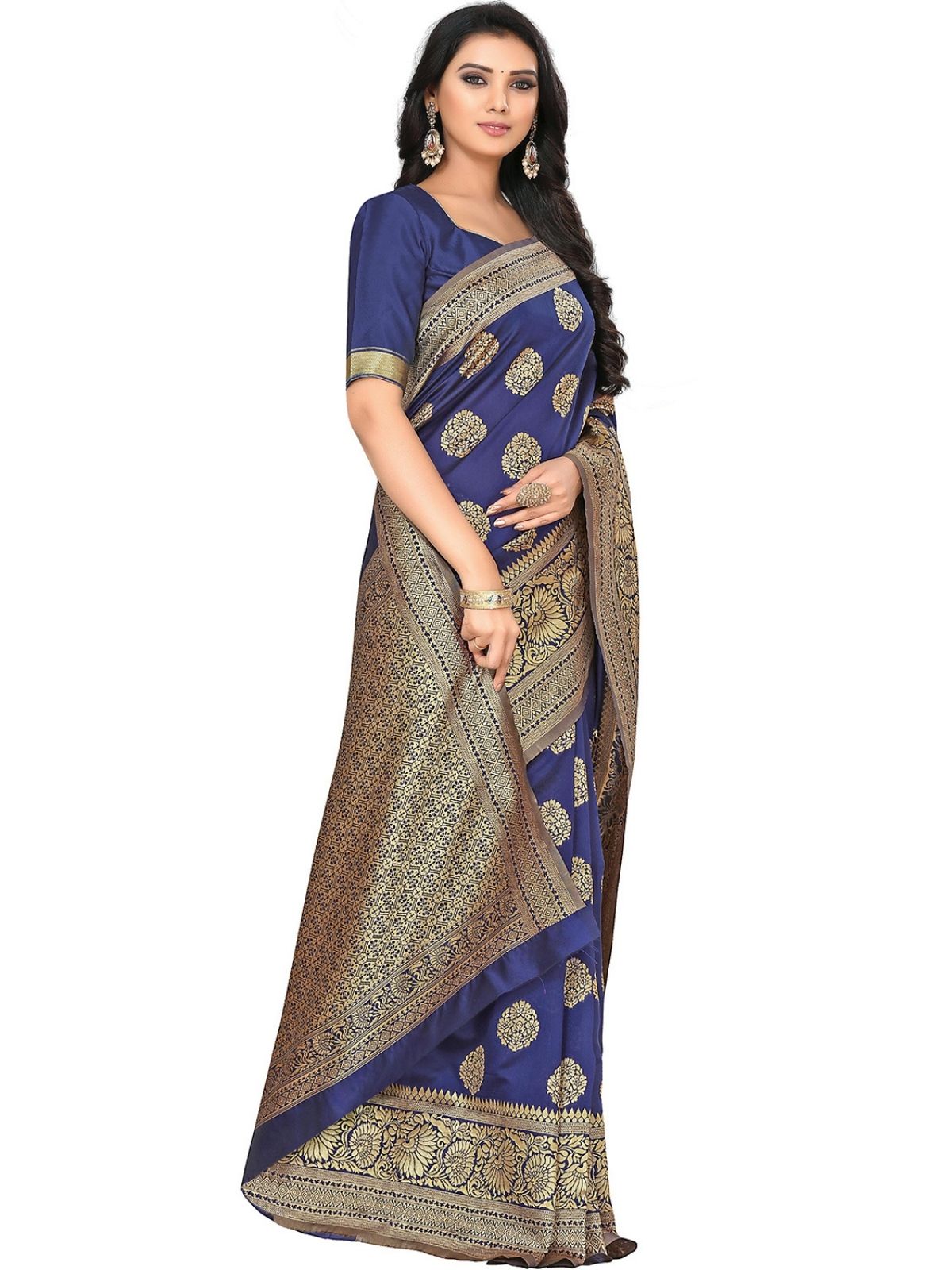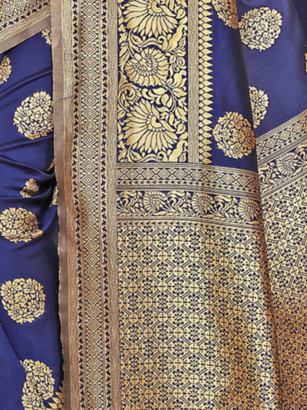 Odette Navy Blue Silk Blend Embellished Saree For Women