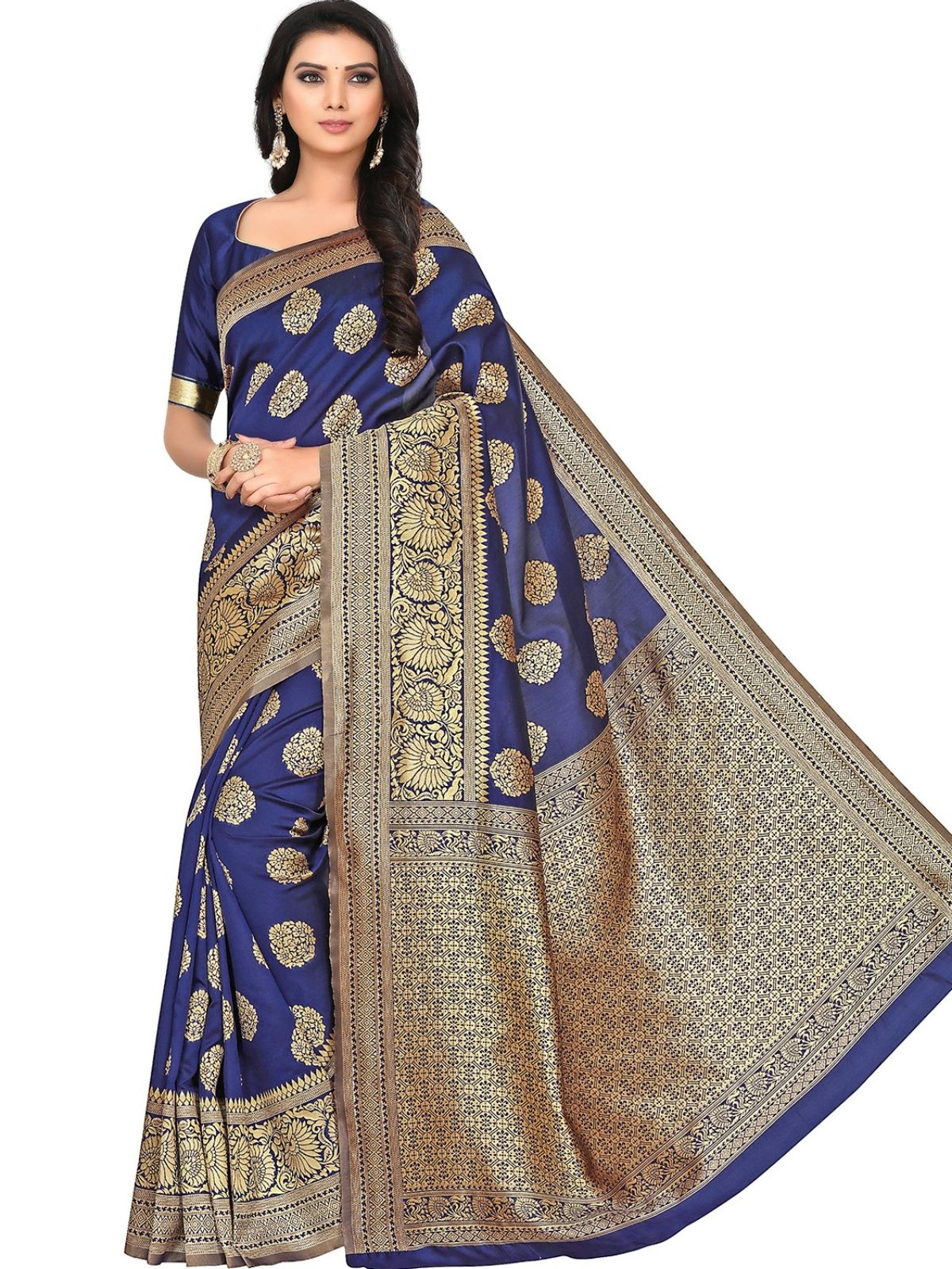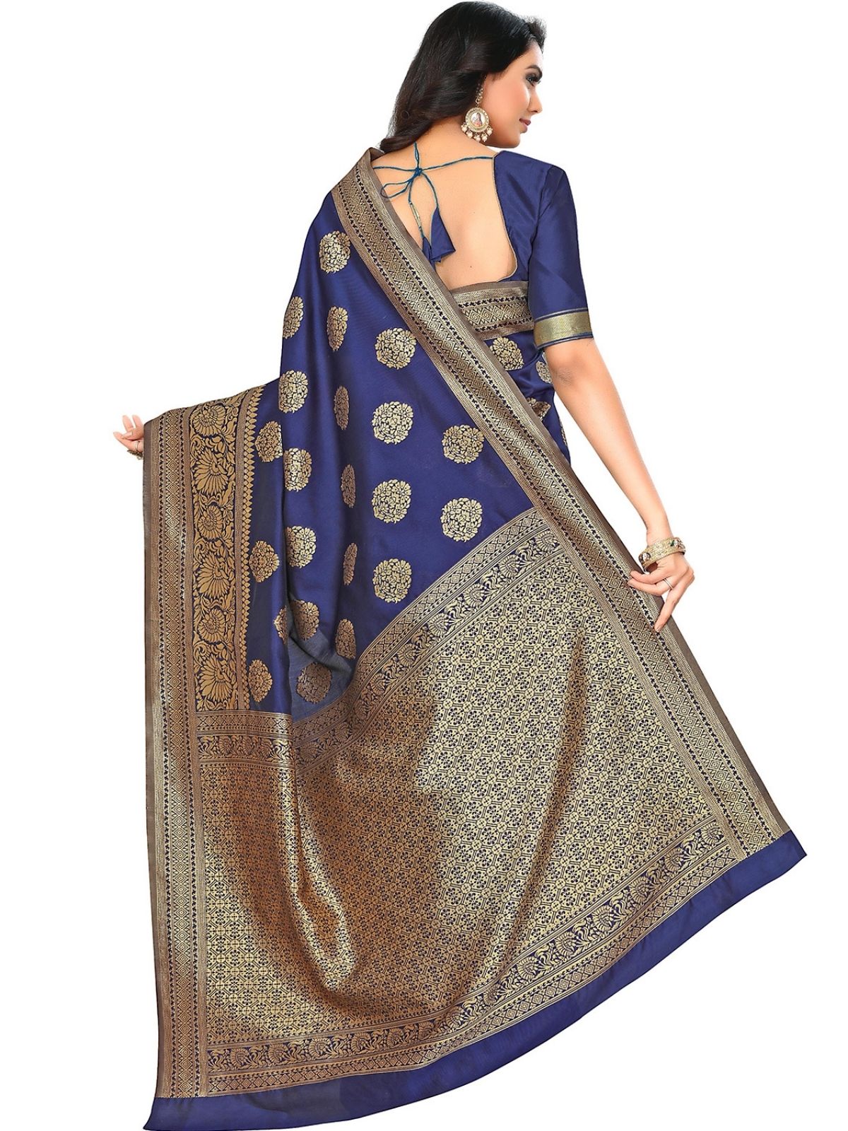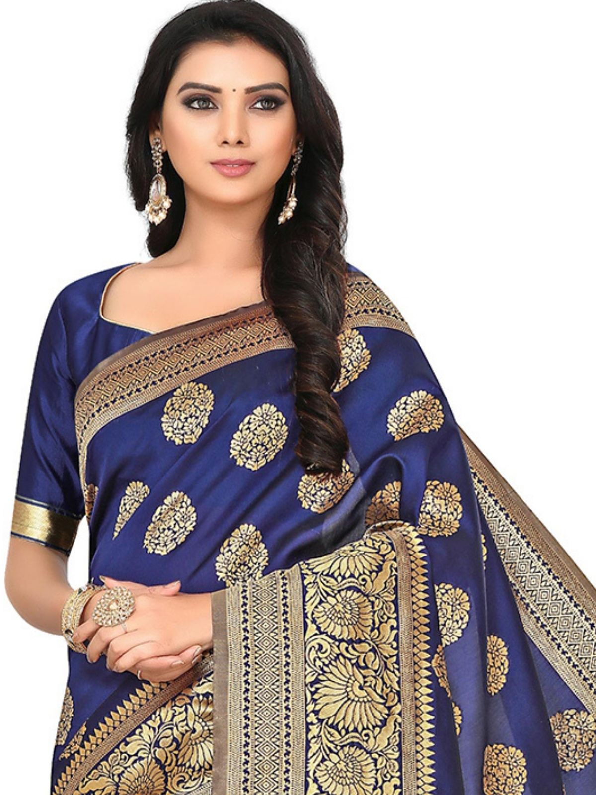 Odette Navy Blue Silk Blend Embellished Saree For Women