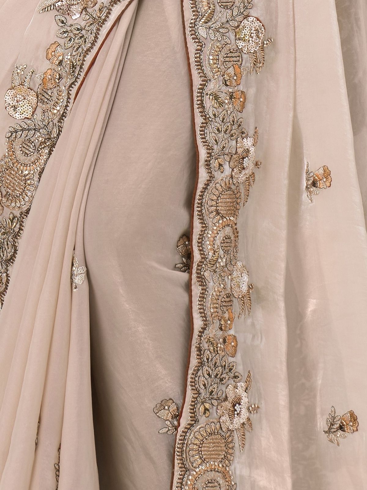 Odette Off White Viscose Silk Embroidered Saree For Women