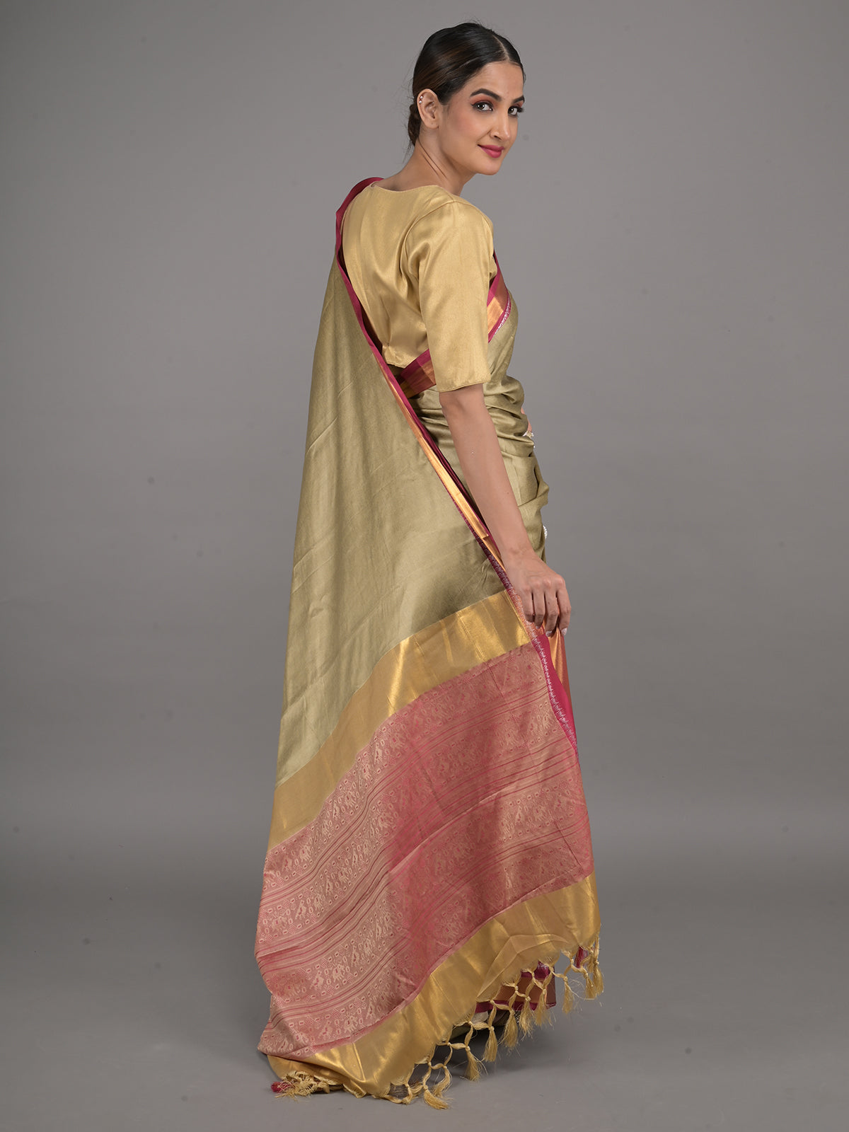 Gift yourself this lovely saree and be the cynosure wherever you go! Style this with a classy clutch and heels and you're good to go!