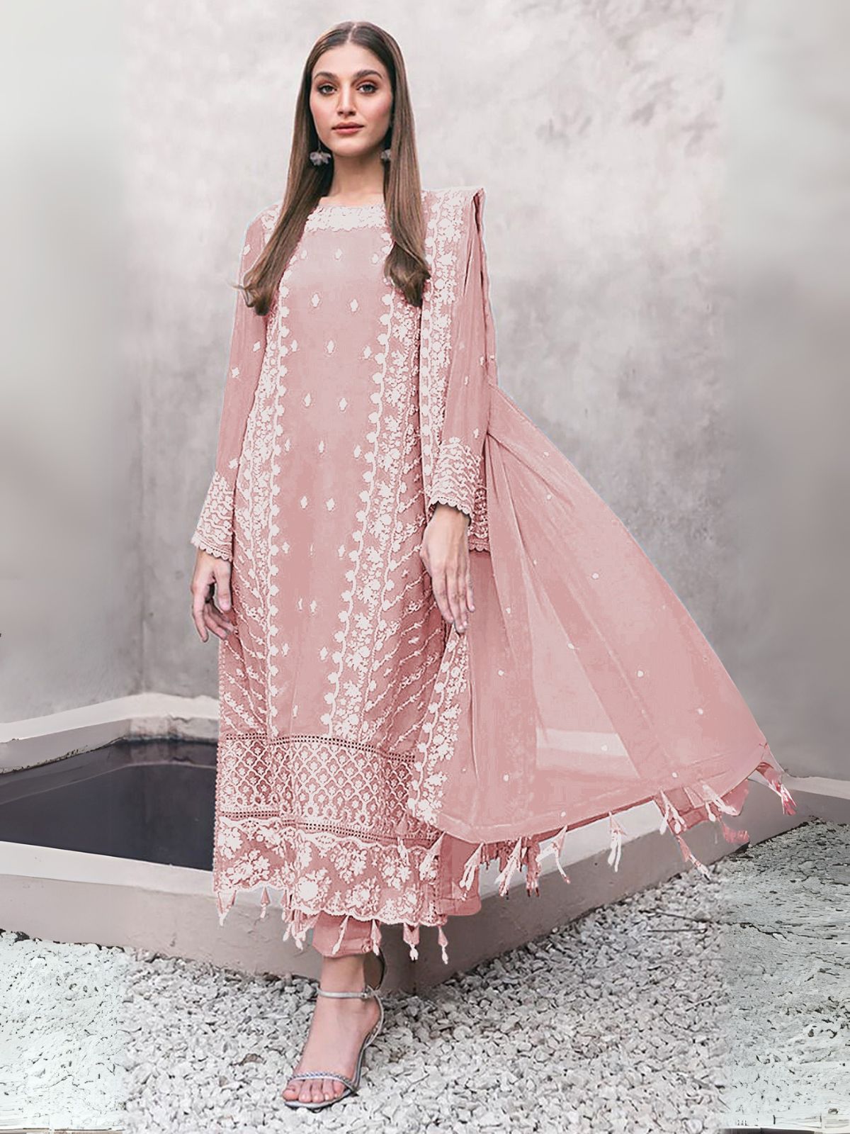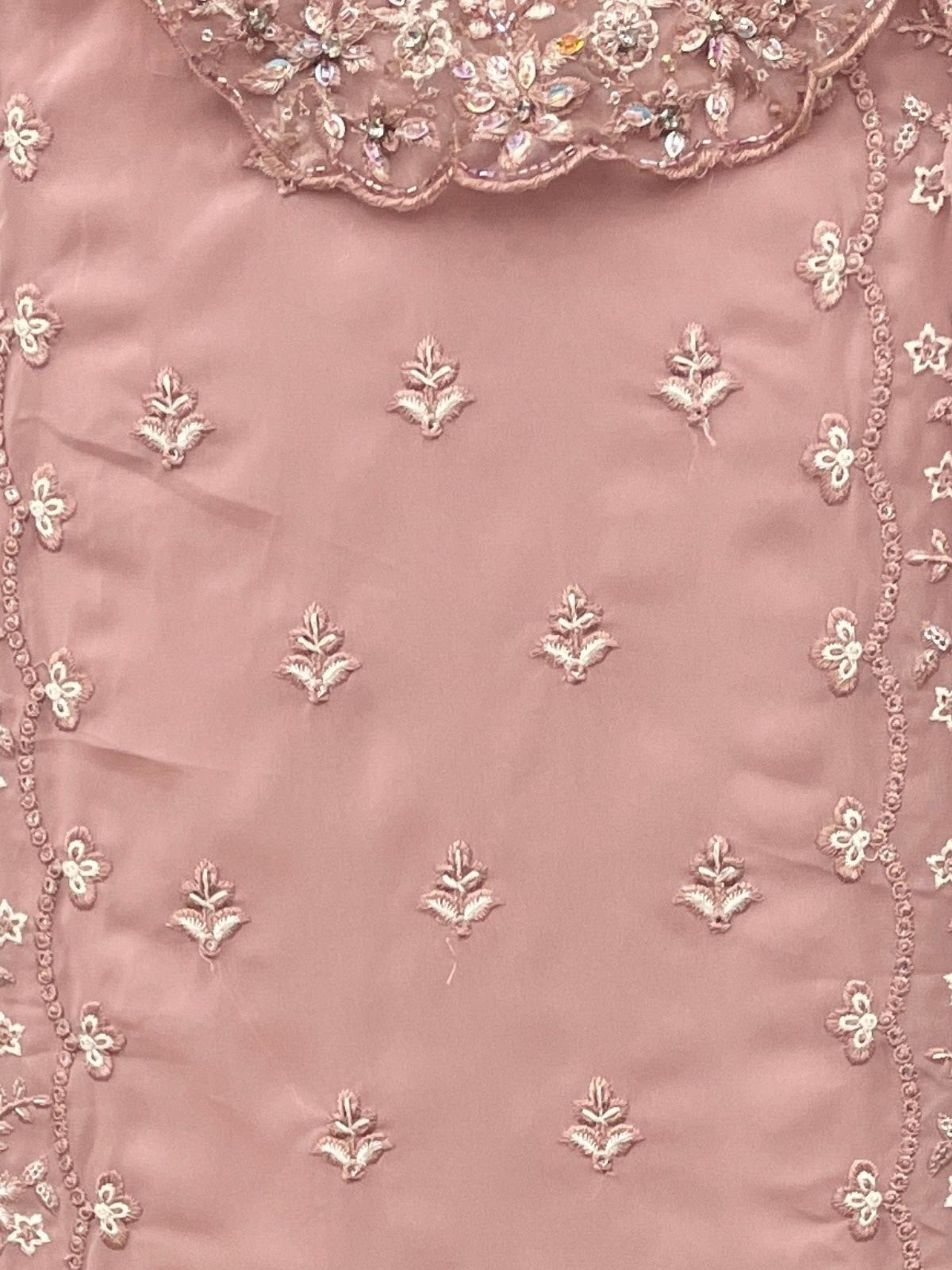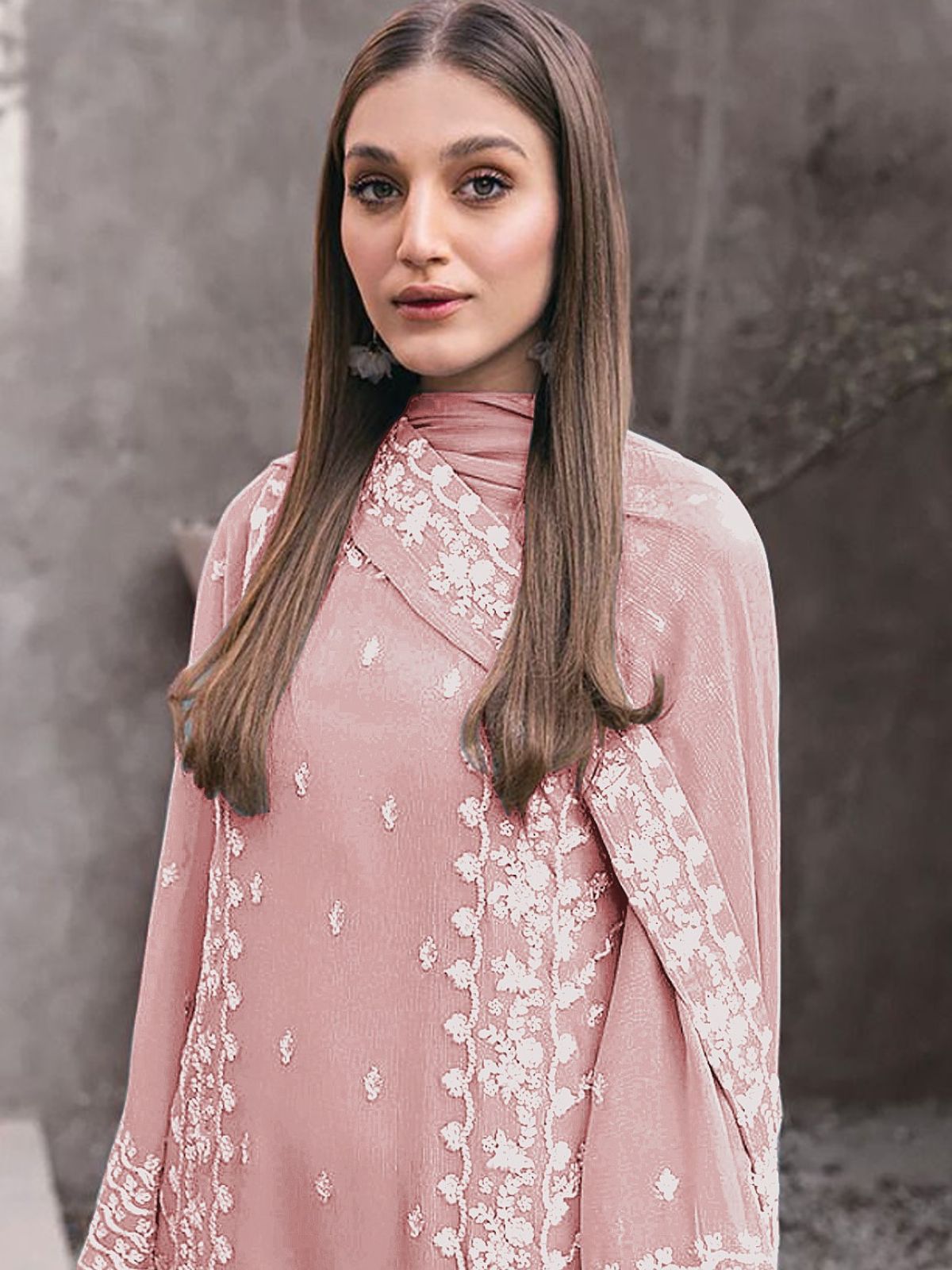 Odette Peach Georgette Embroidered Semi-Stitched Kurta Set For Women