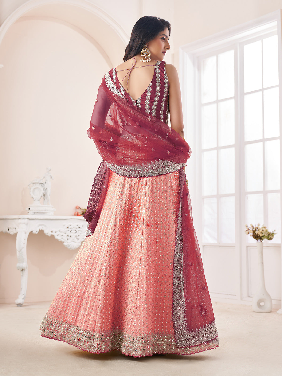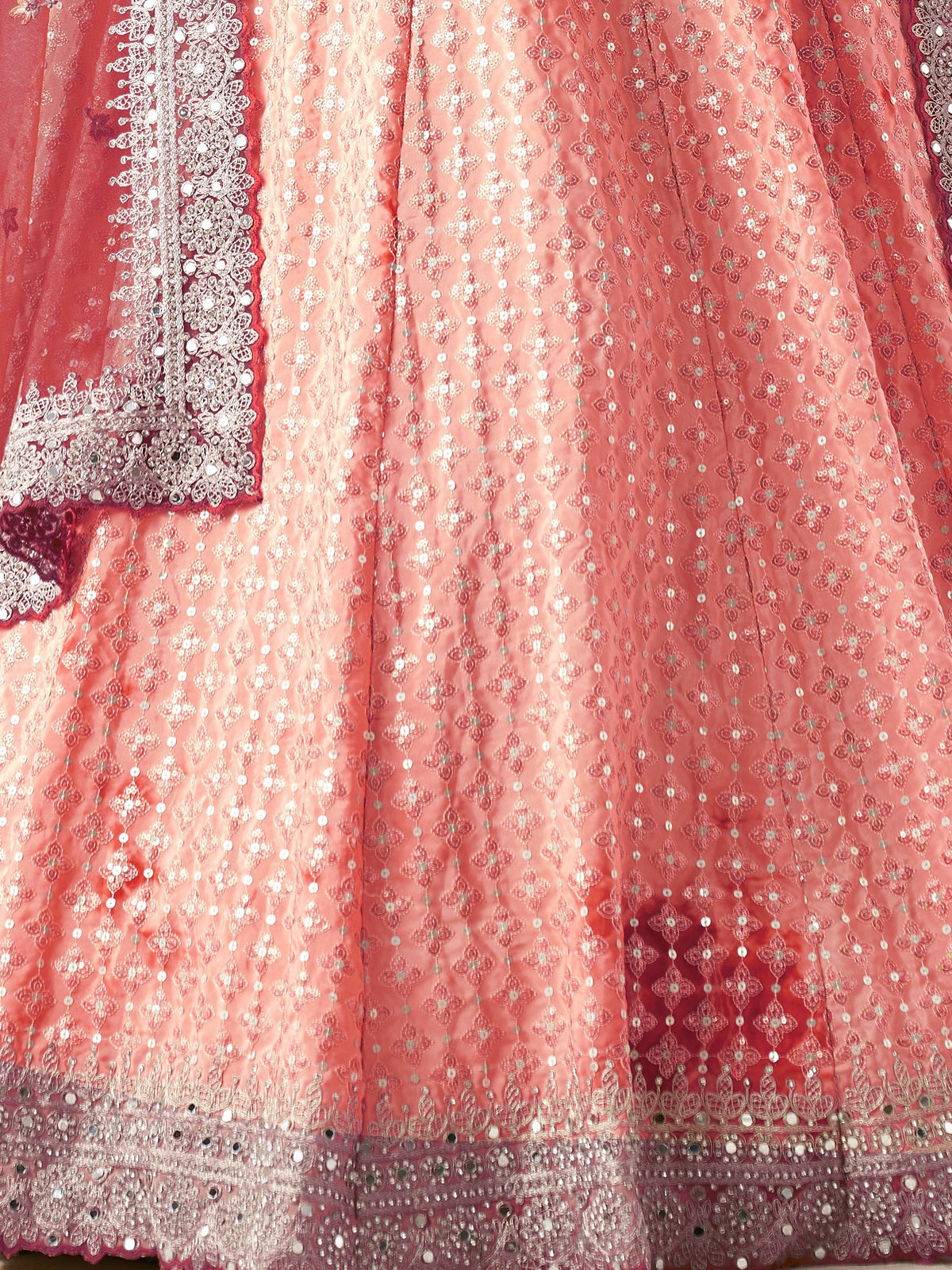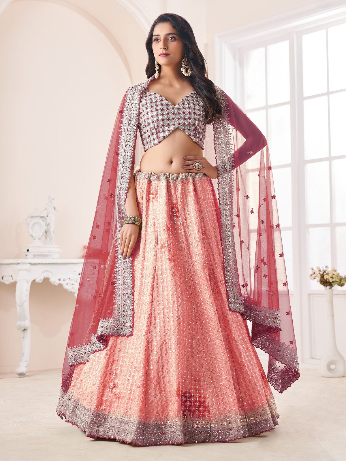 Odette Peach Shibori Crepe Embroidered Semi Stitched Lehenga With Unstitched Blouse for Women