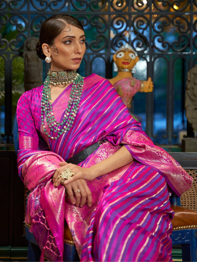 Odette Pink And Purple Woven Design Silk Blend Saree With Unstitched Blouse For Women