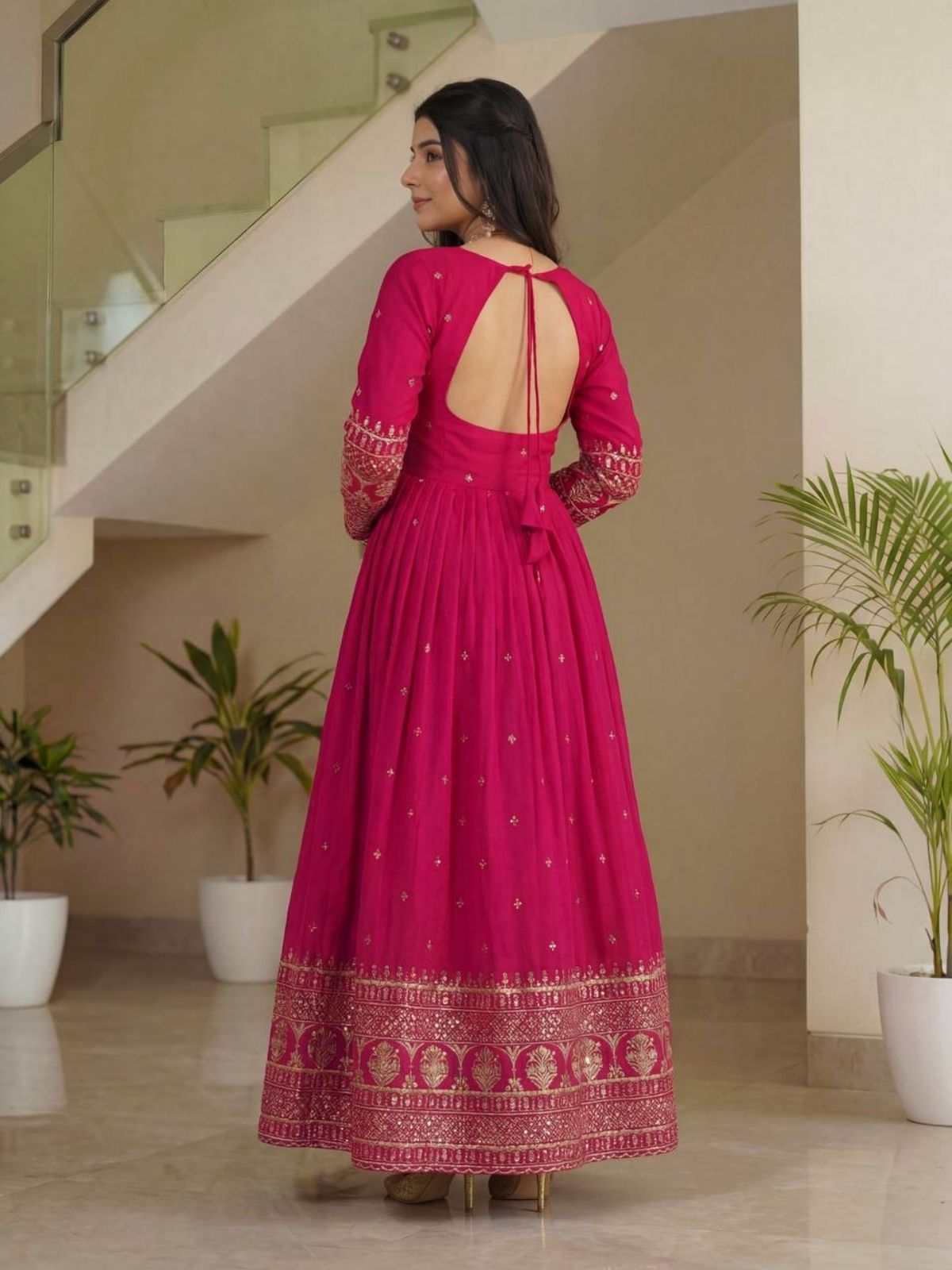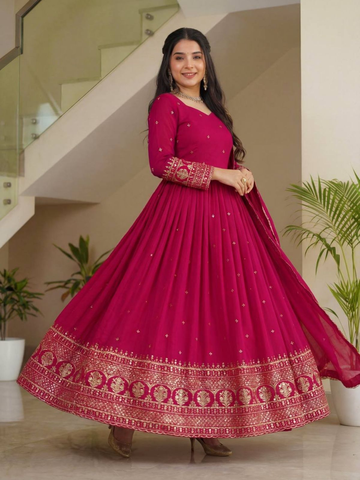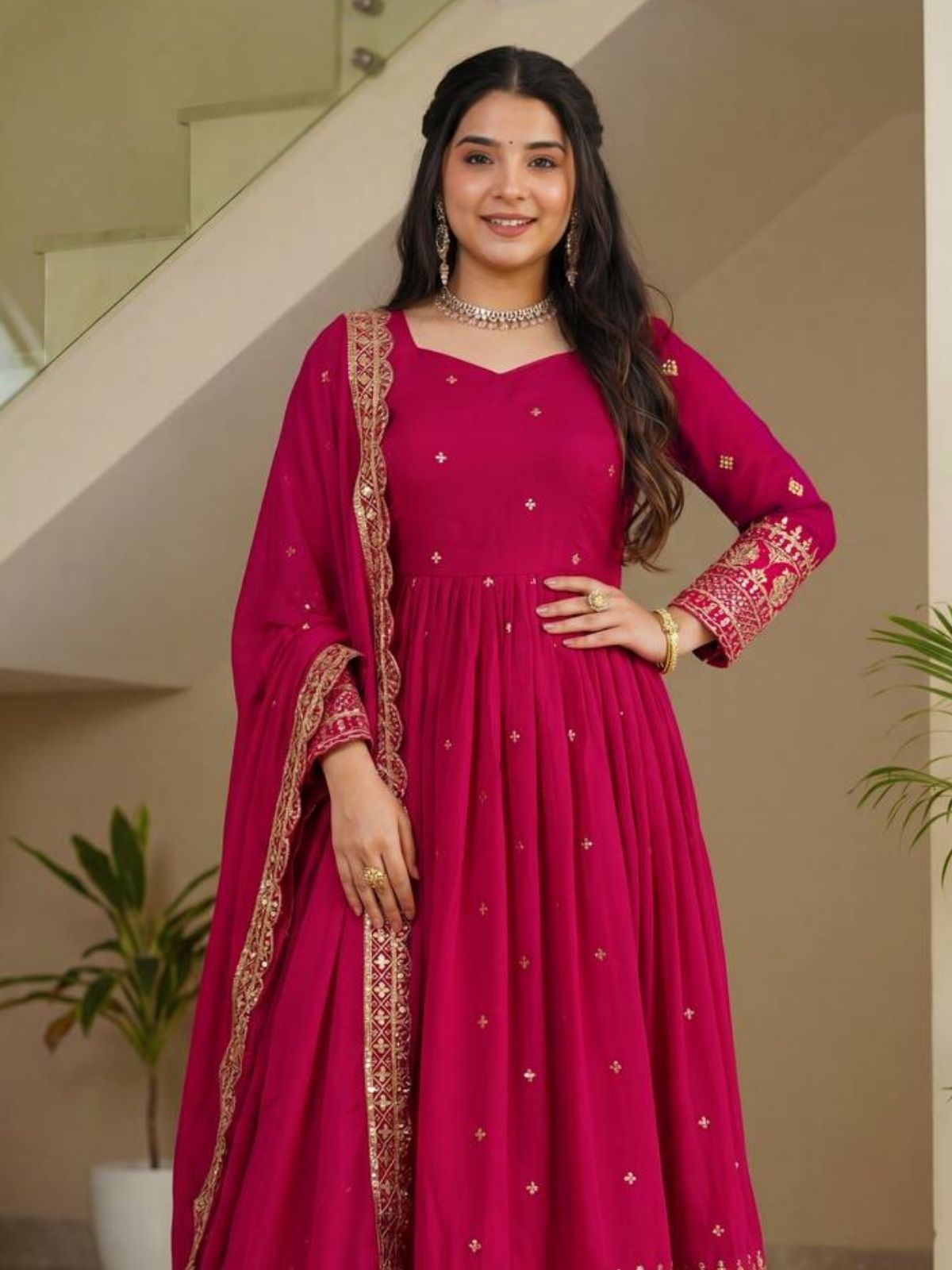 Odette Pink Georgette Solid Stitched Kurta Set For Women