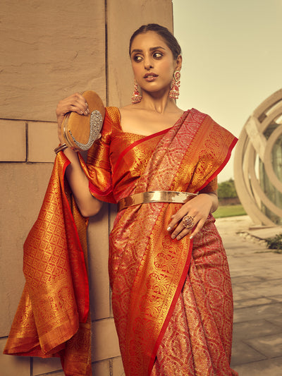Odette Orange Handloom Woven Silk Blend Saree for Women With Unstitched Blouse