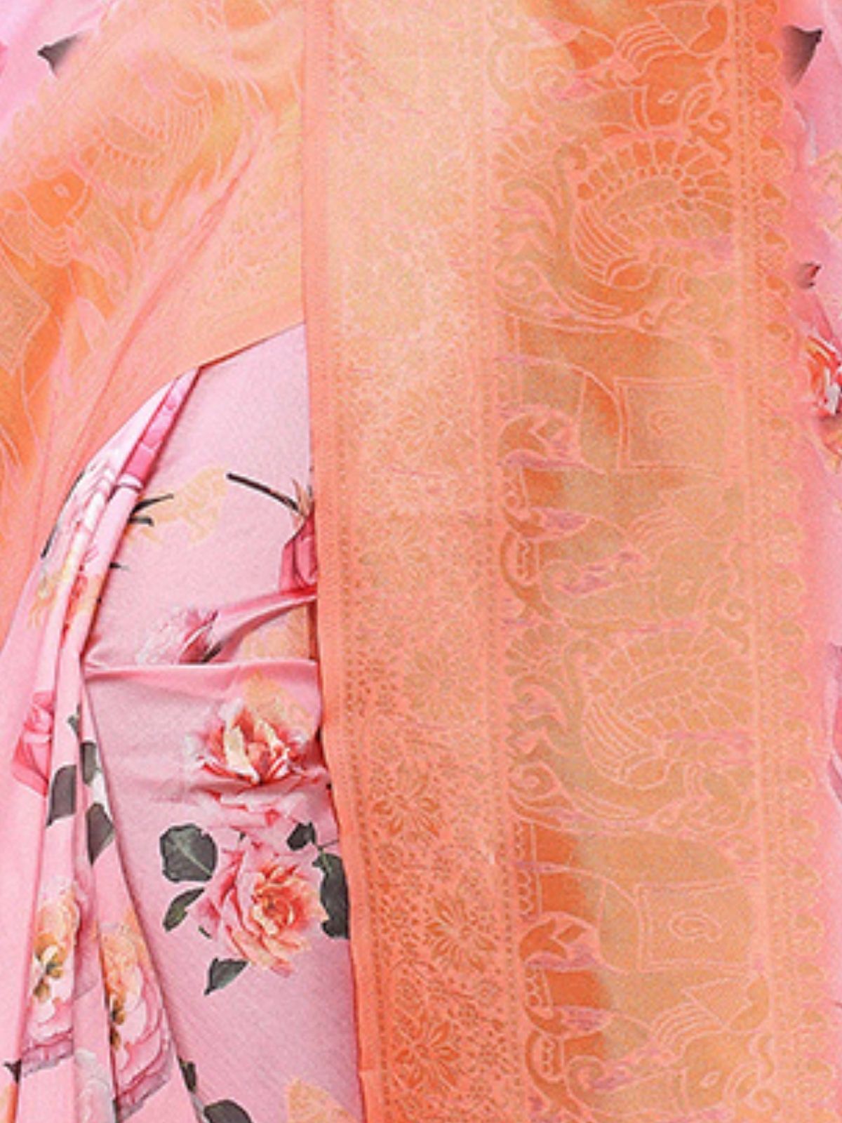 Odette Pink Silk Blend Floral Printed Saree For Women