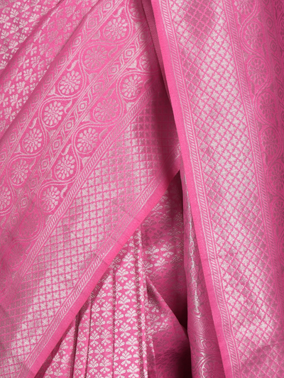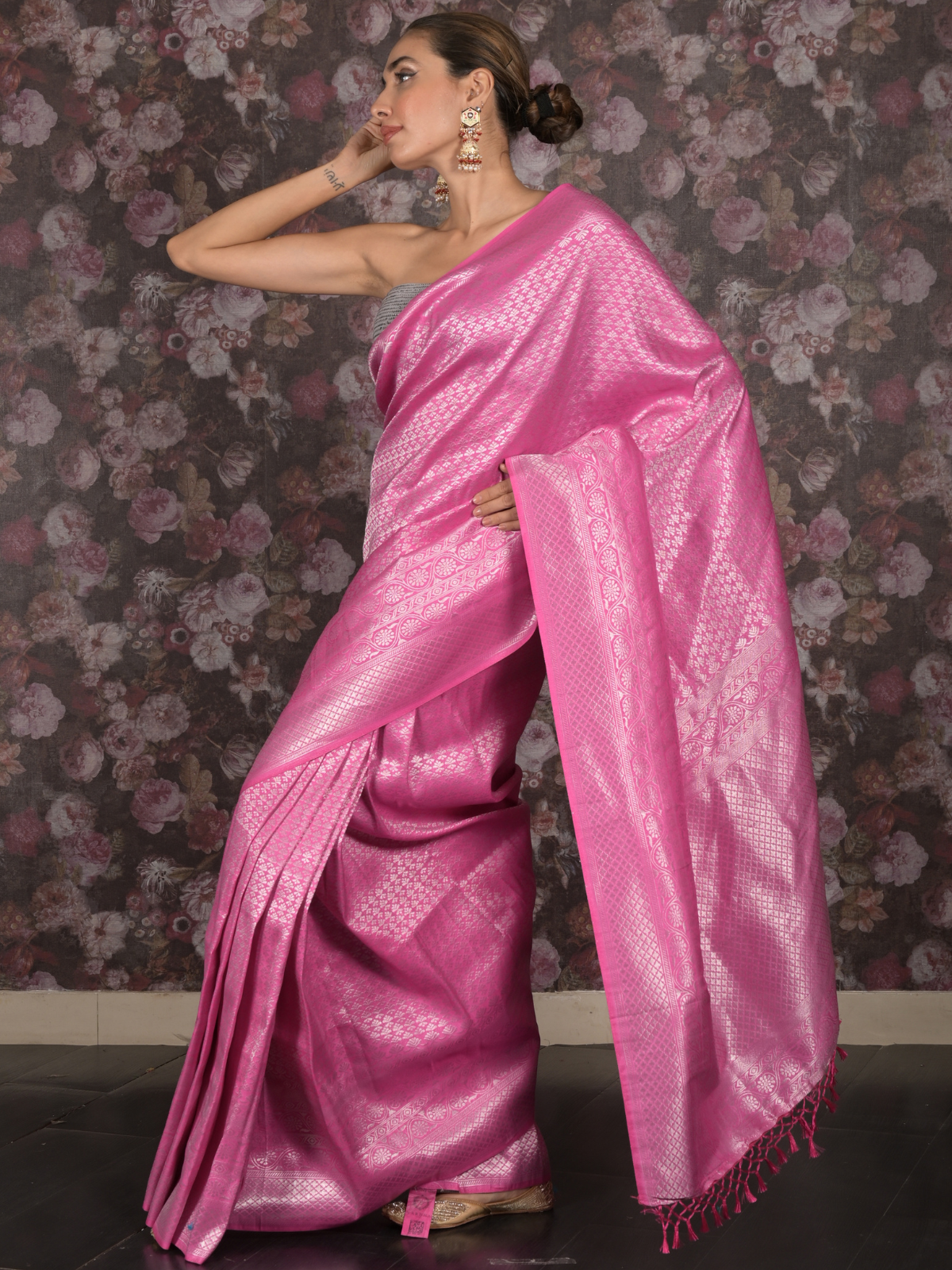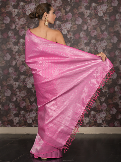 Odette Pink Silk Blend Woven Saree with Unstitched Blouse for Women