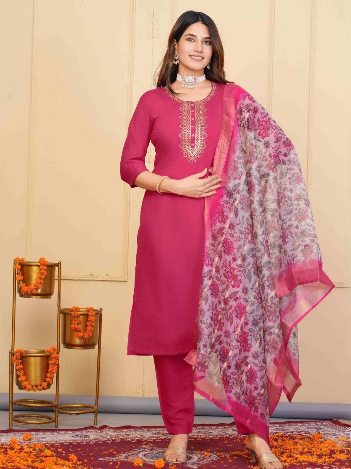Make Your Day Bright With This Beautiful Kurta Set. Match It With A Pair Of Heels And A Minimal Jewelry.