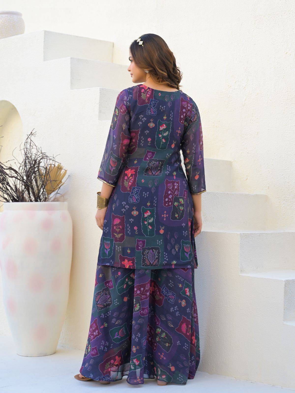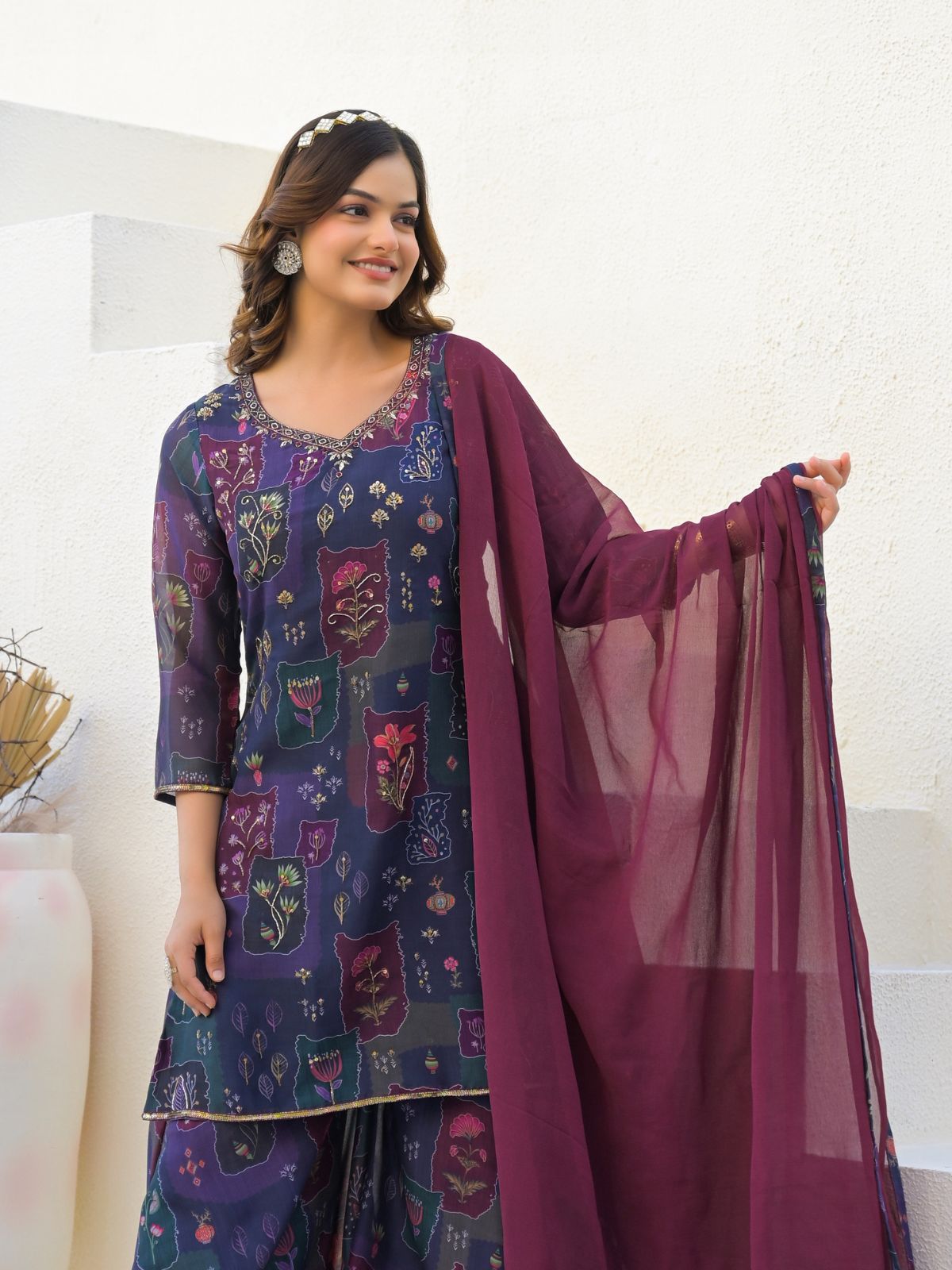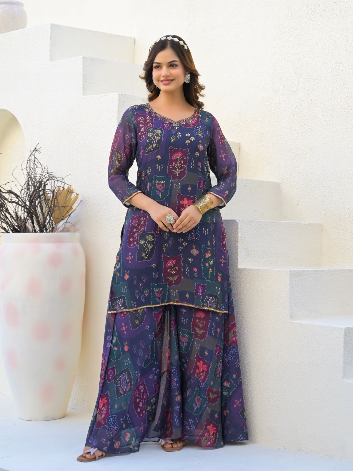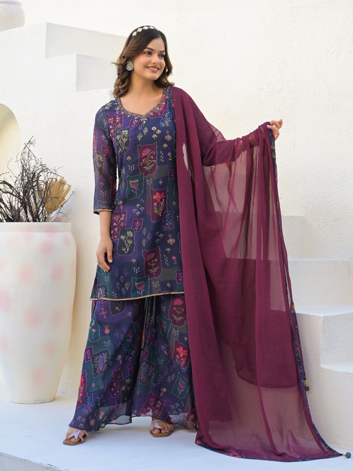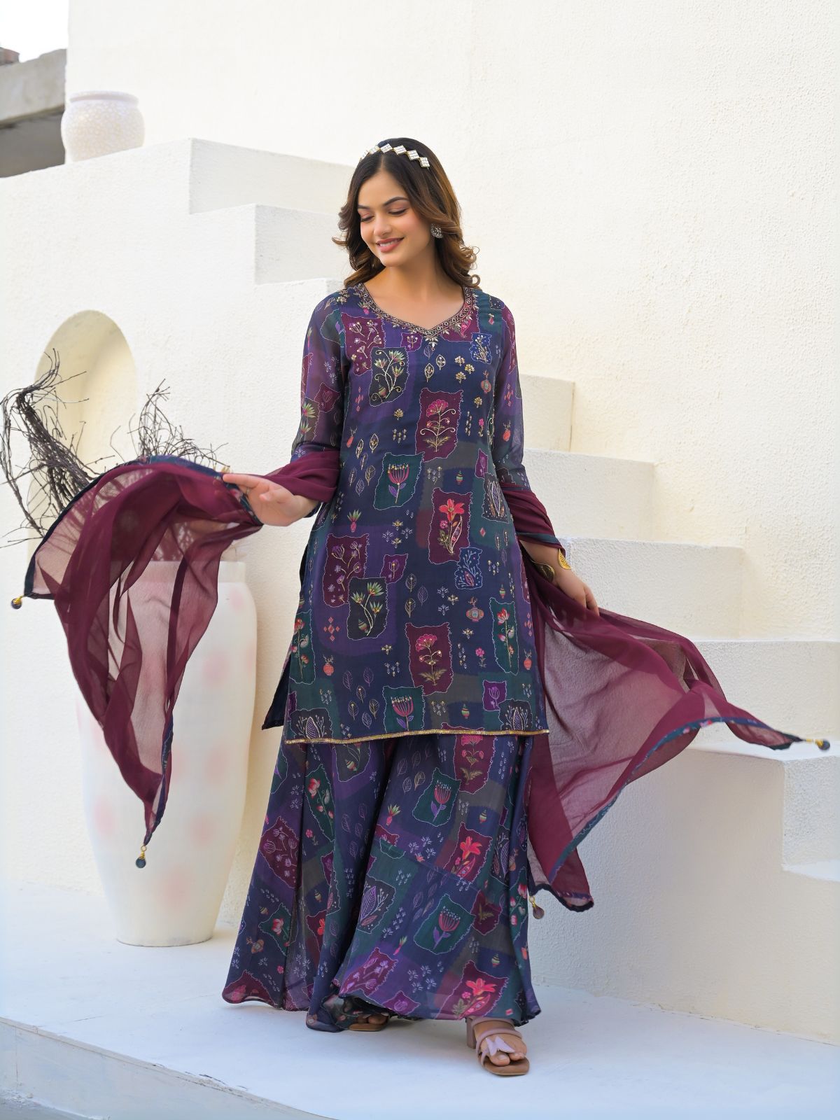 Odette Purple Georgette Embellished Stiched Kurta Set For Women