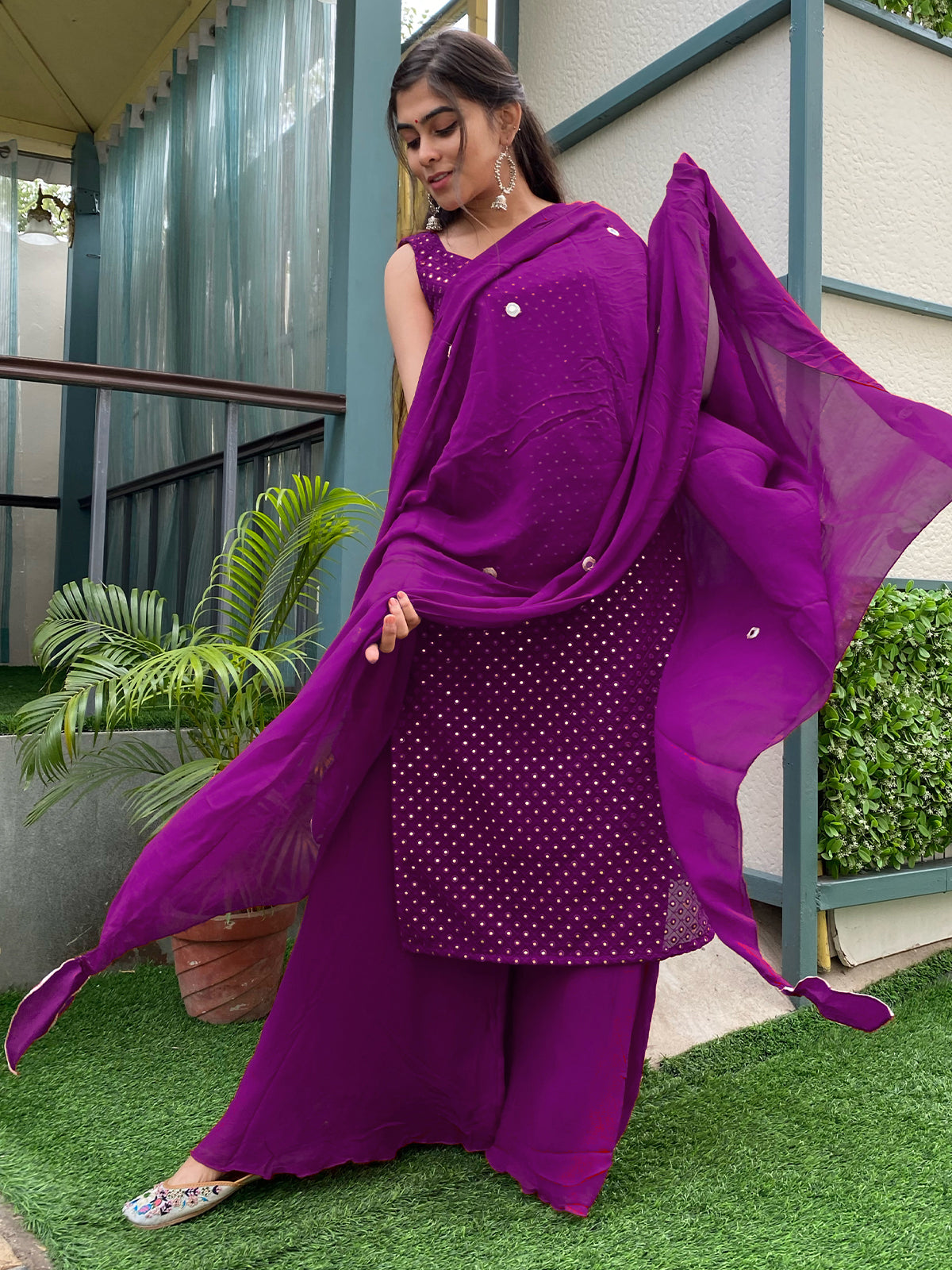 Look stylish and chic in this classy Kurta Set and set the temperature high this festive season or Work Style this with our potli bags and ballerinas and you are good to go