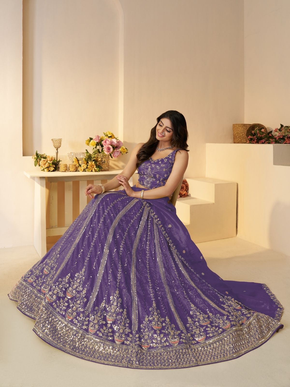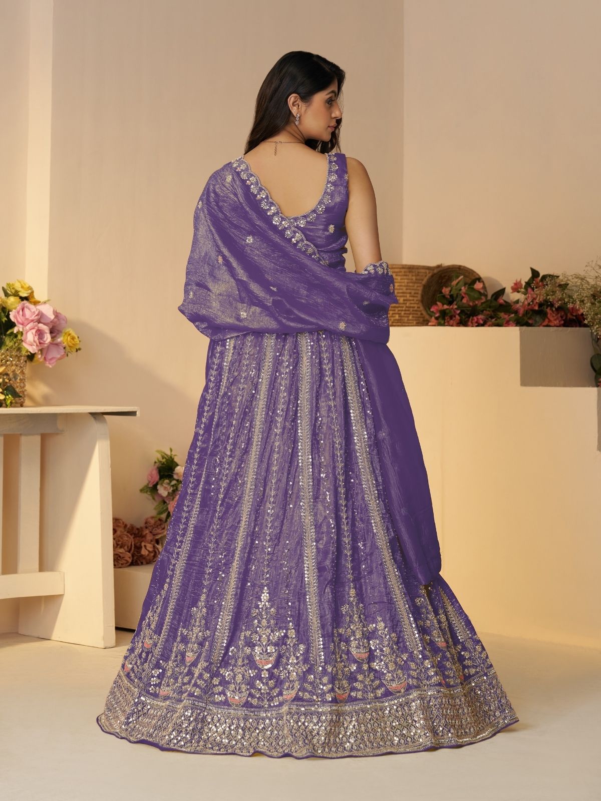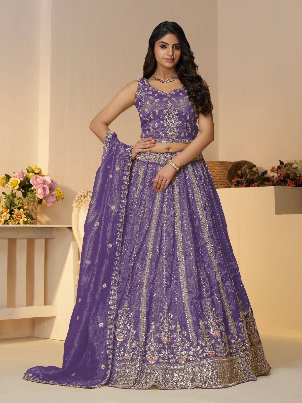 Odette Purple Jimmy Choo Embroidered Semi-Stitched Lehenga For Women