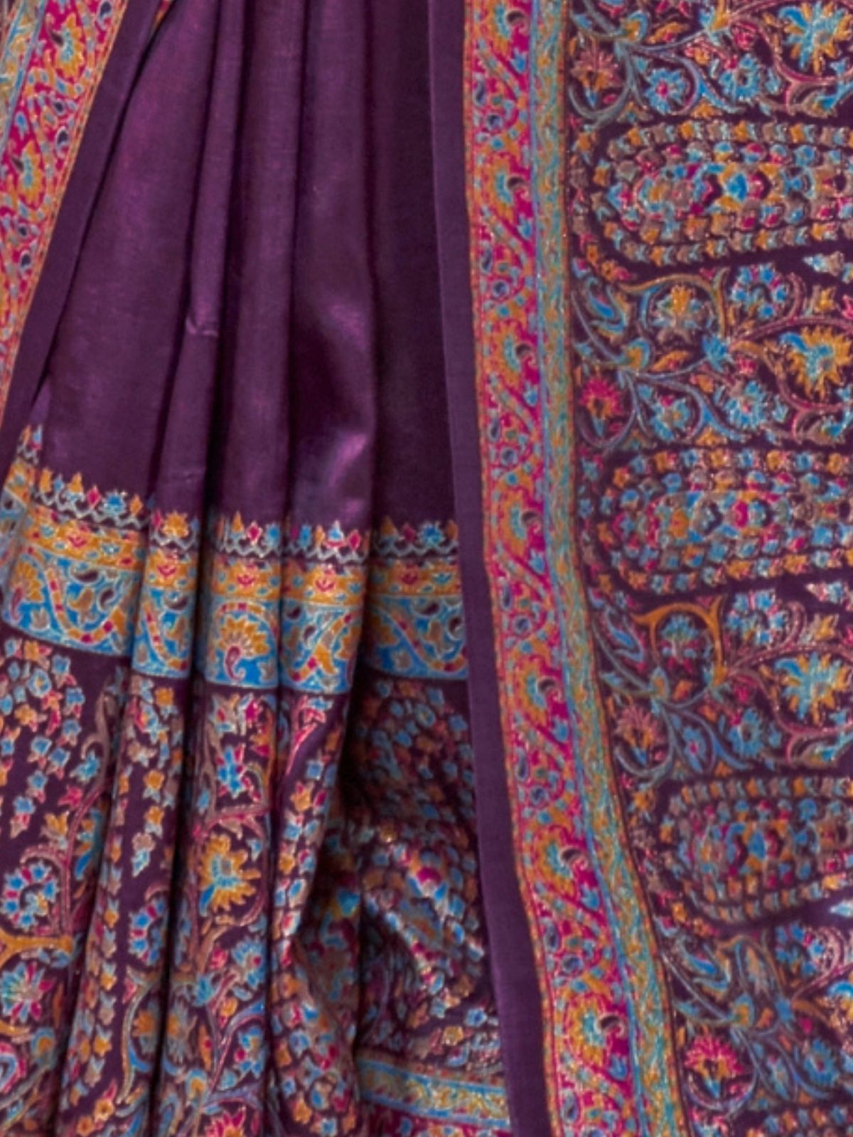Odette Purple Silk Blend Woven Saree With Unstitched Blouse For Women