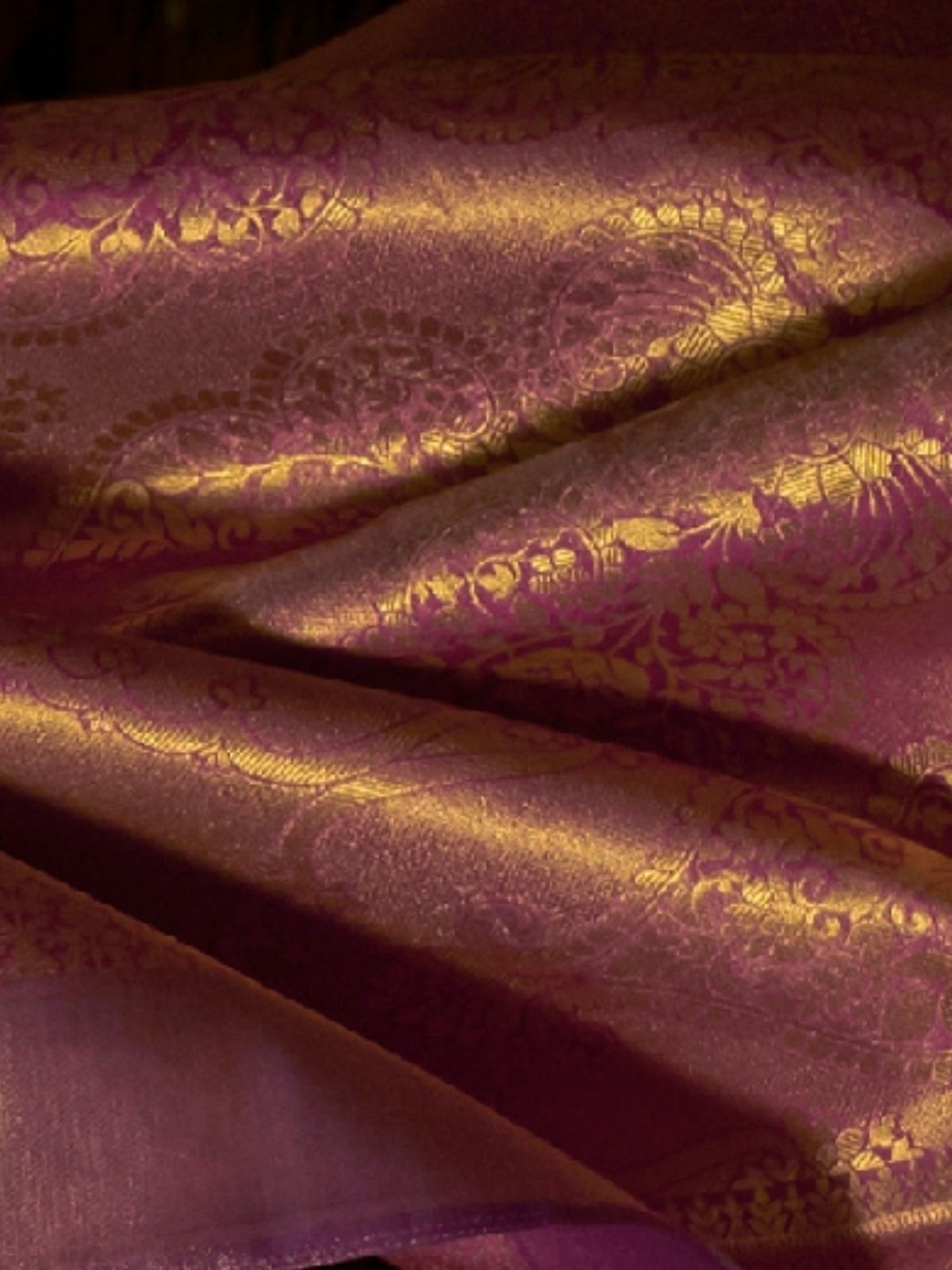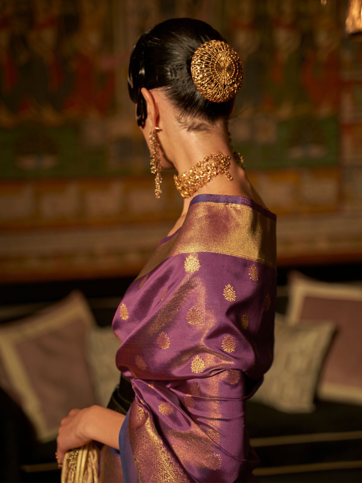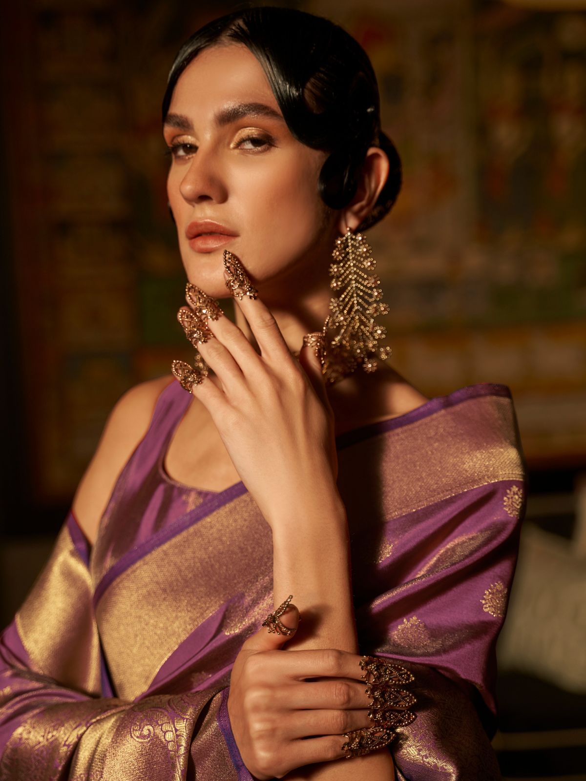 Odette Purple Woven Design Silk Blend Saree With Unstitched Blouse For Women