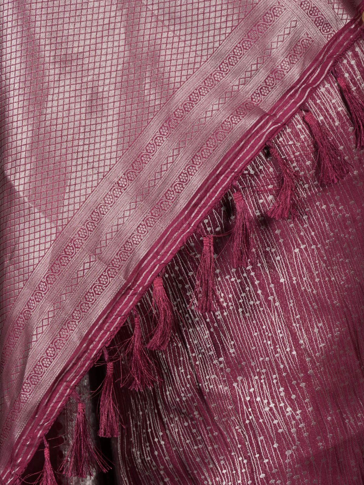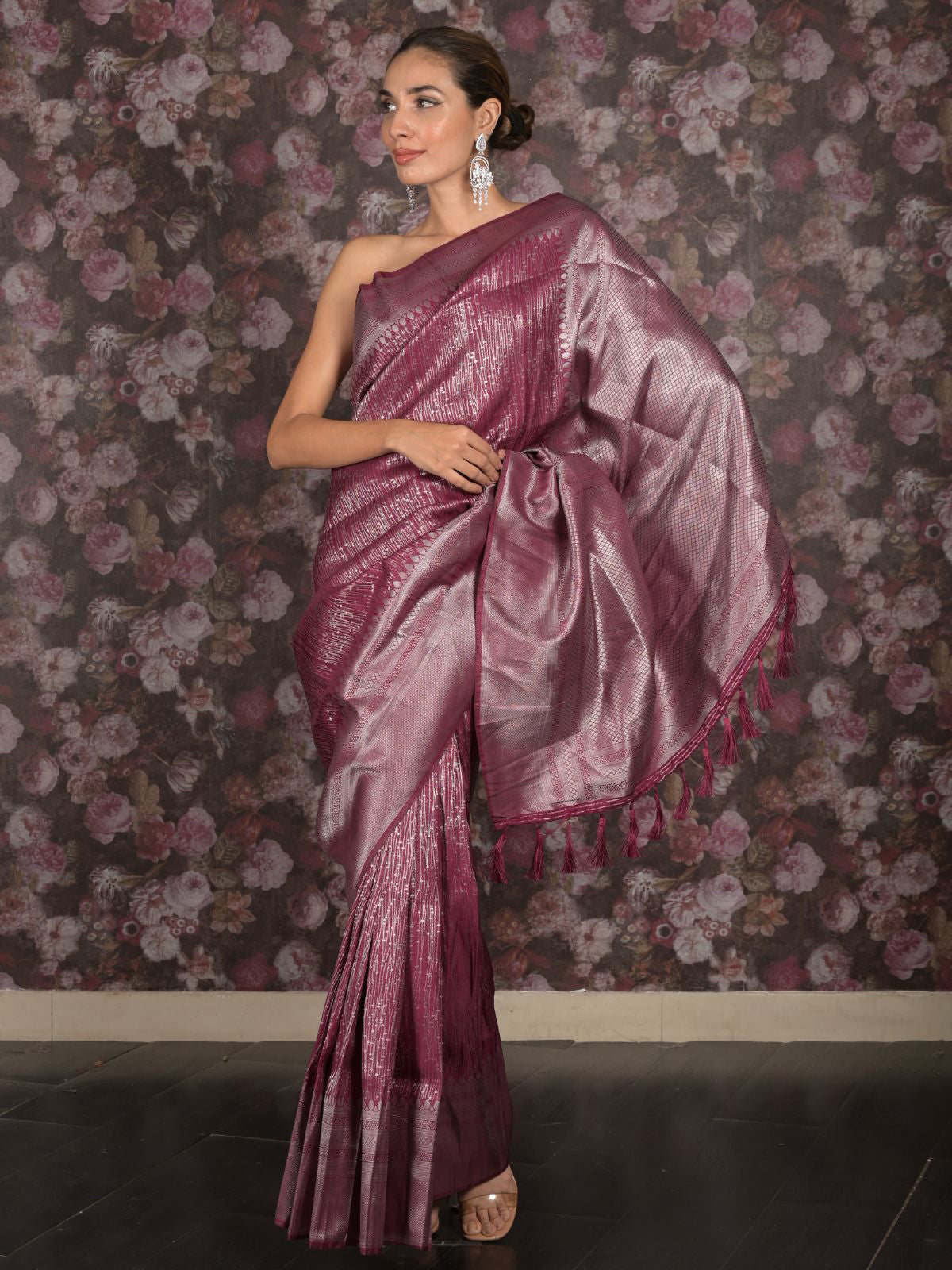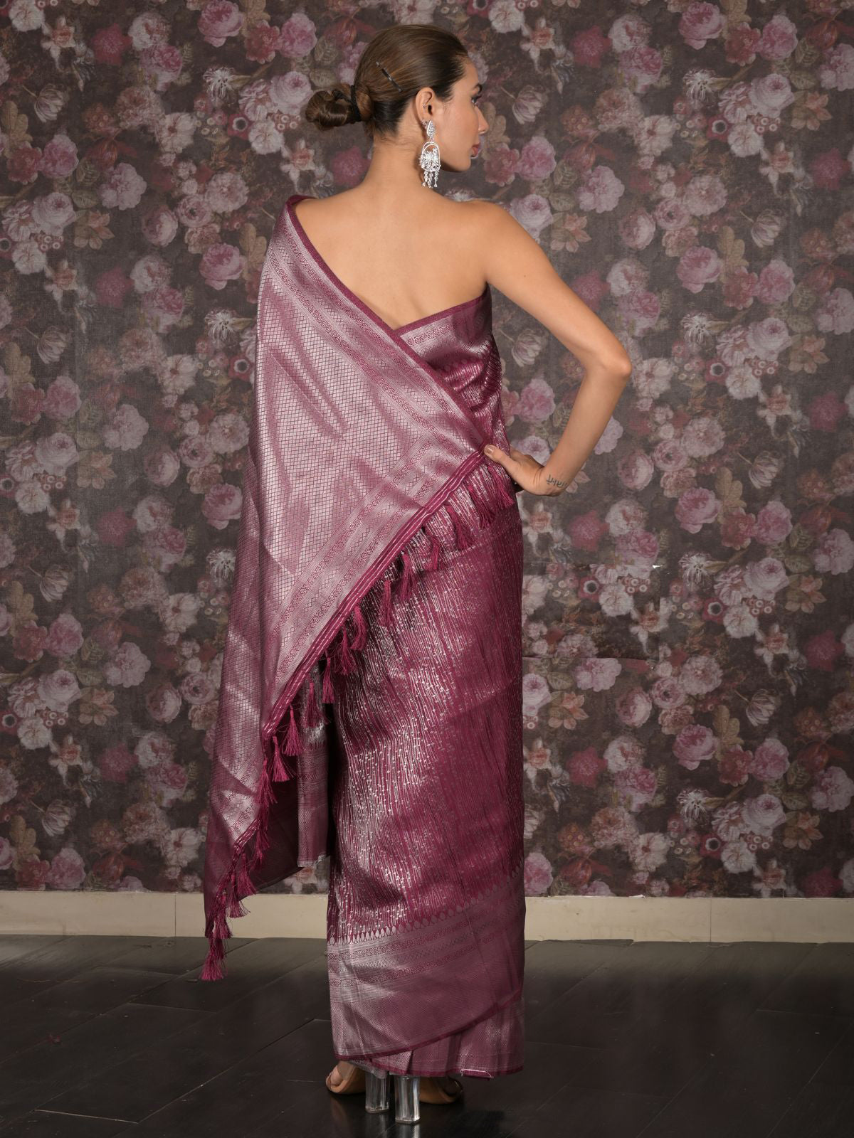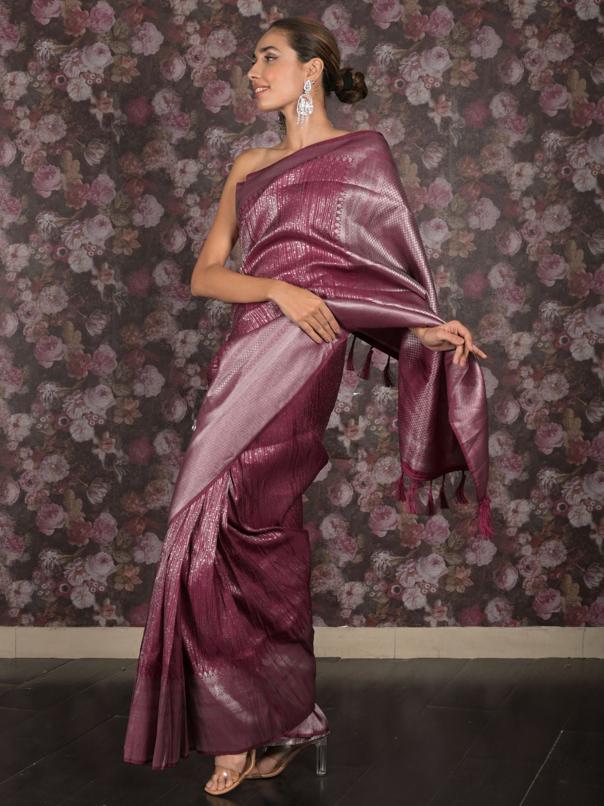 Odette Purple Woven Silk Blend Saree with Unstitched Blouse for Women