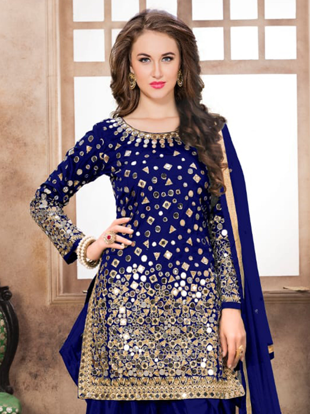 Odette Royal Blue Tafeta Embellished Semi stitched Kurta Set For Women