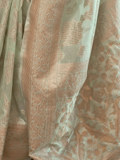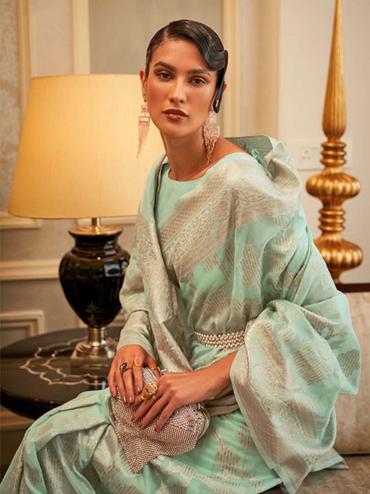 Odette Sea Green Woven Design Silk Blend Saree With Unstitched Blouse For Women