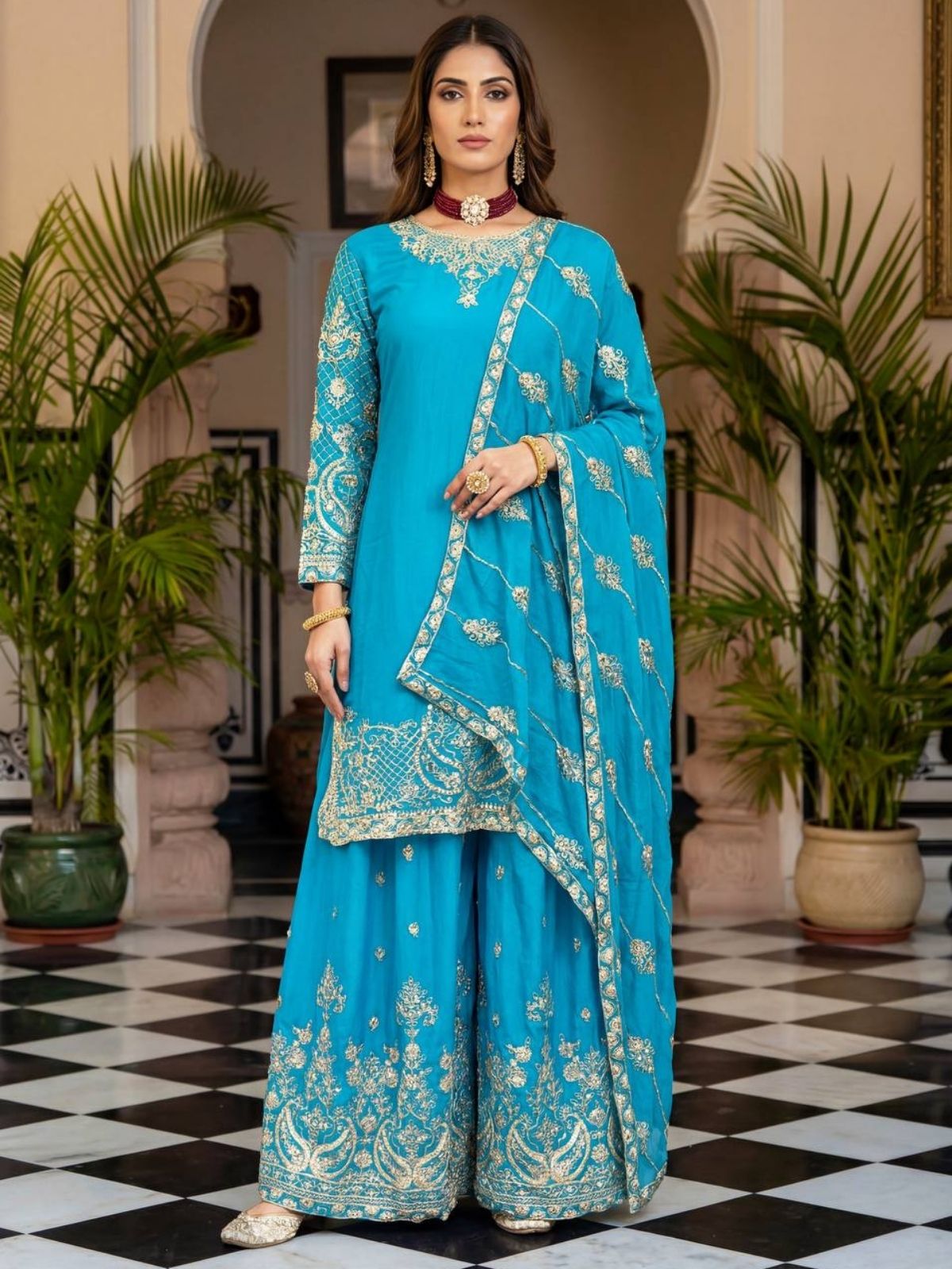 • Dupatta Color : Sky Blue