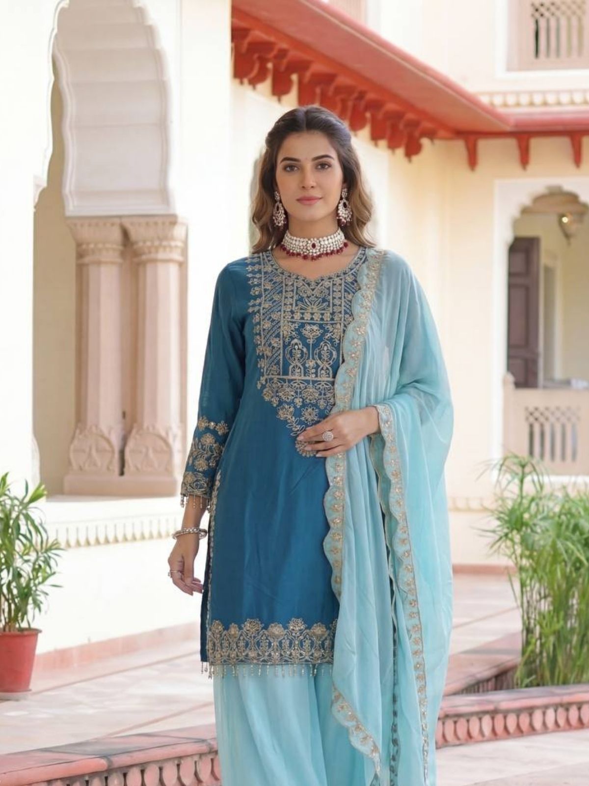 • Dupatta Color : Aqua Blue