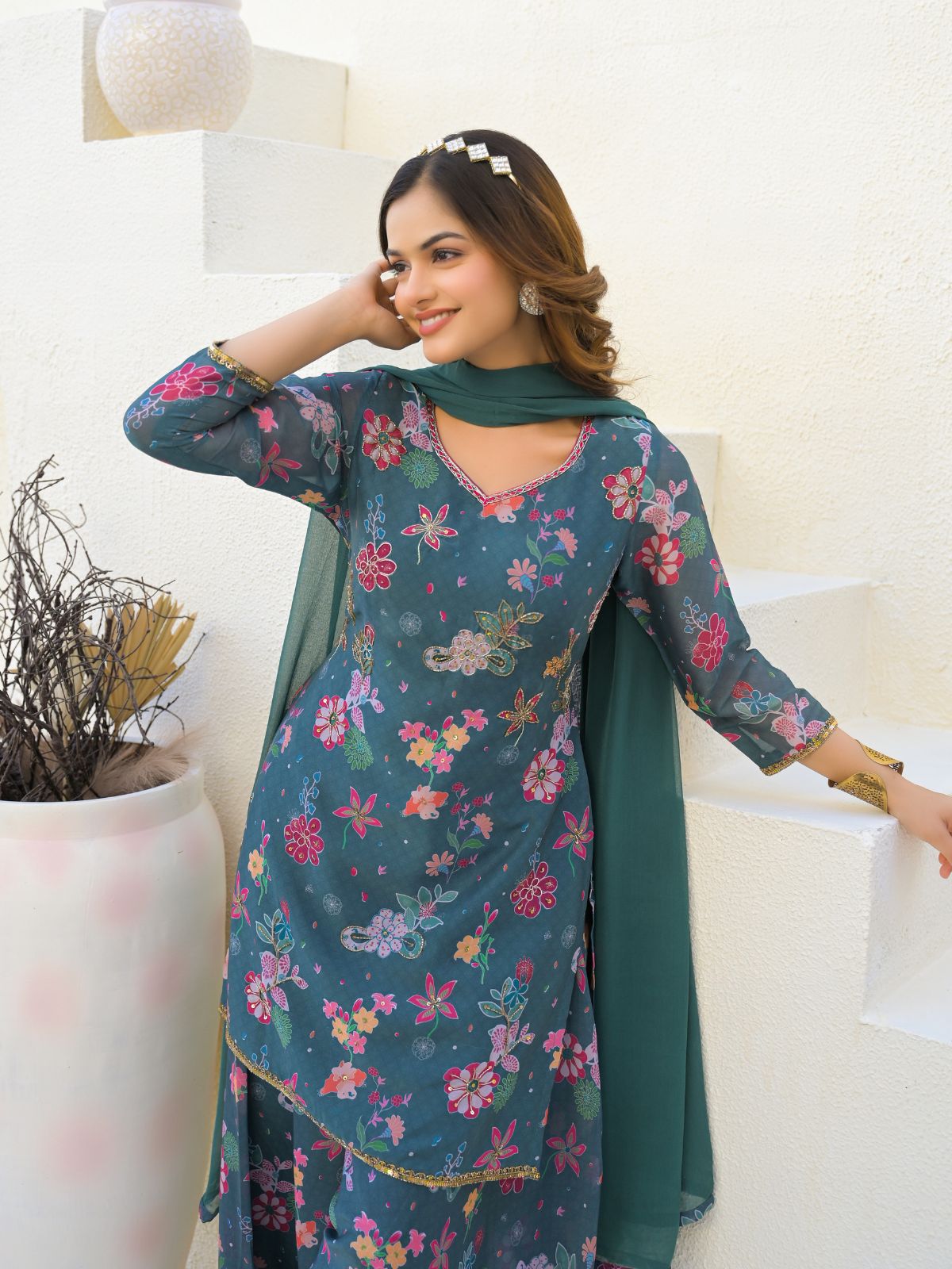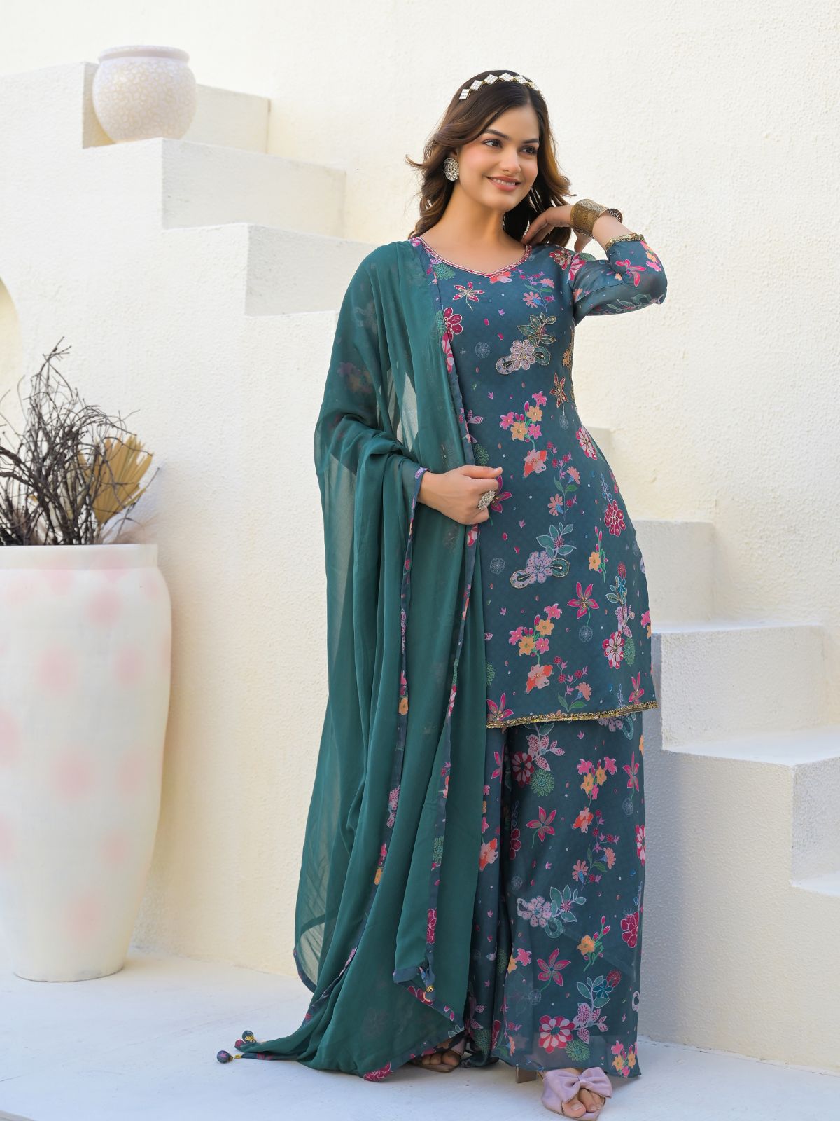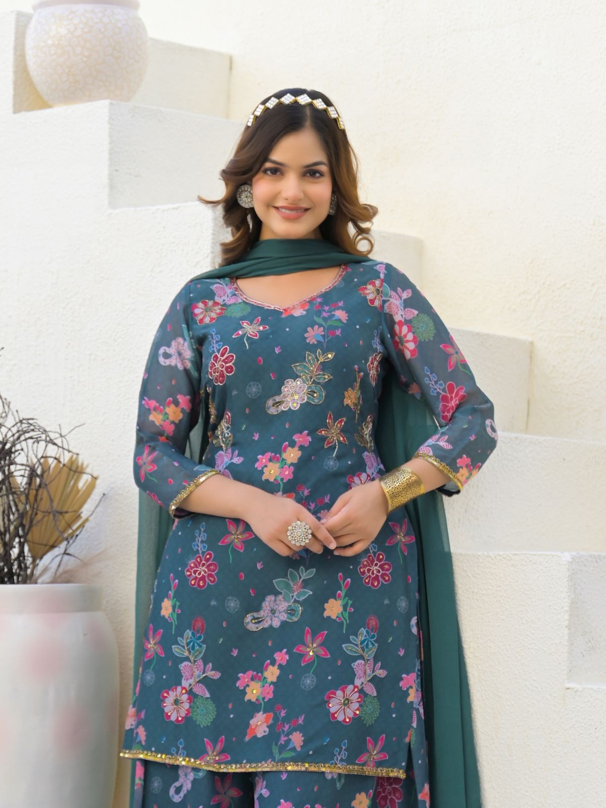 • Dupatta Color : Teal Green