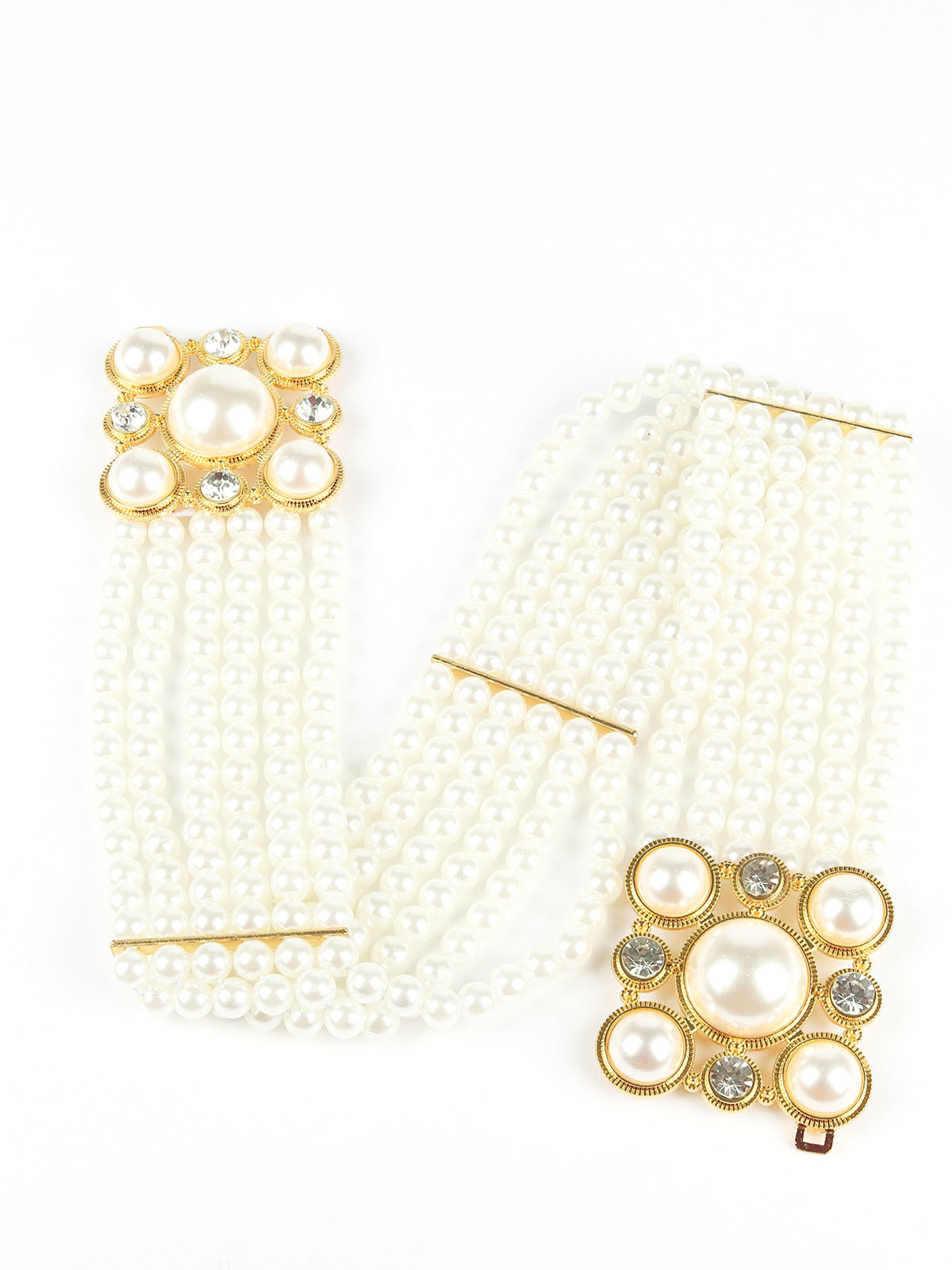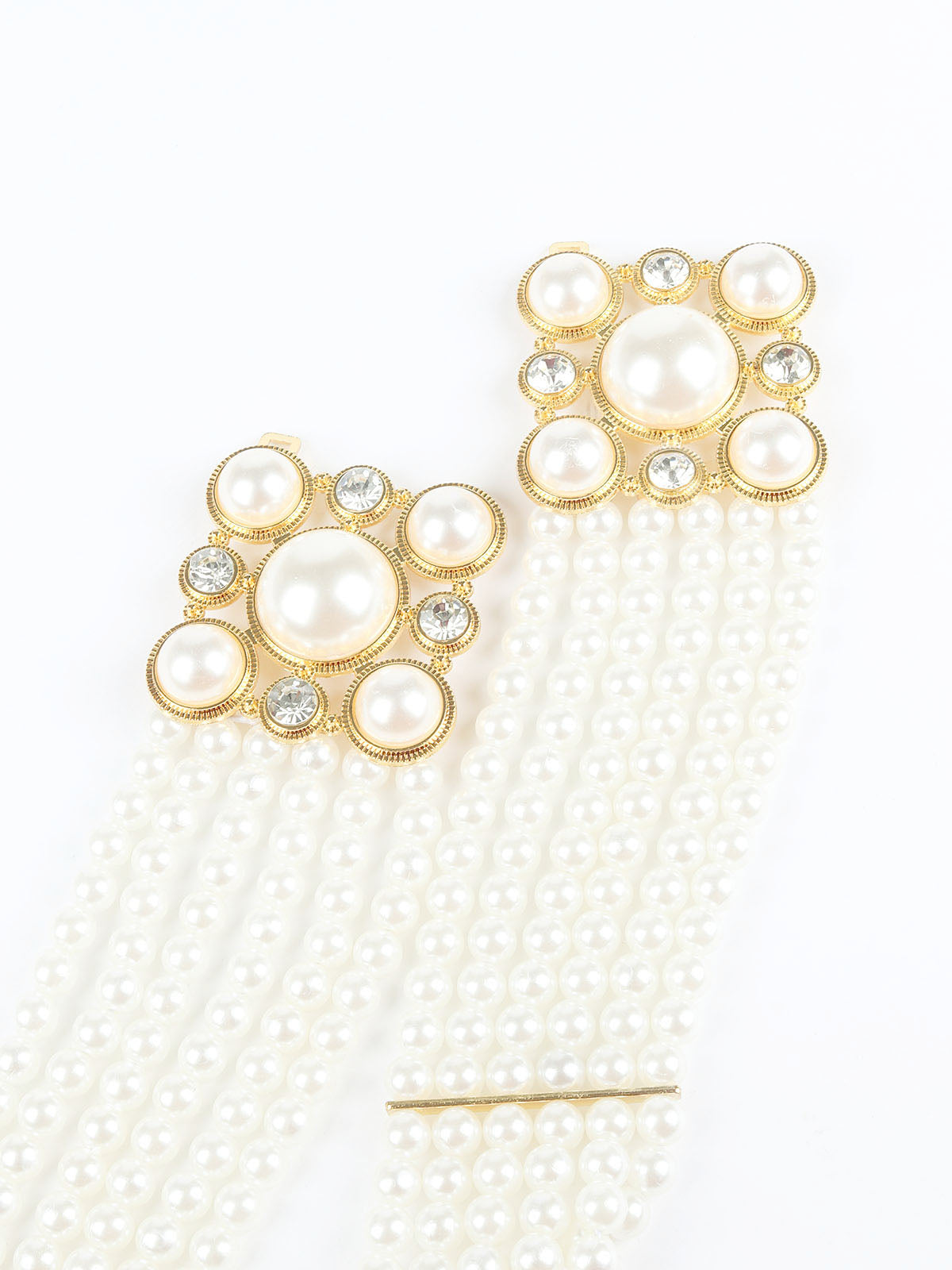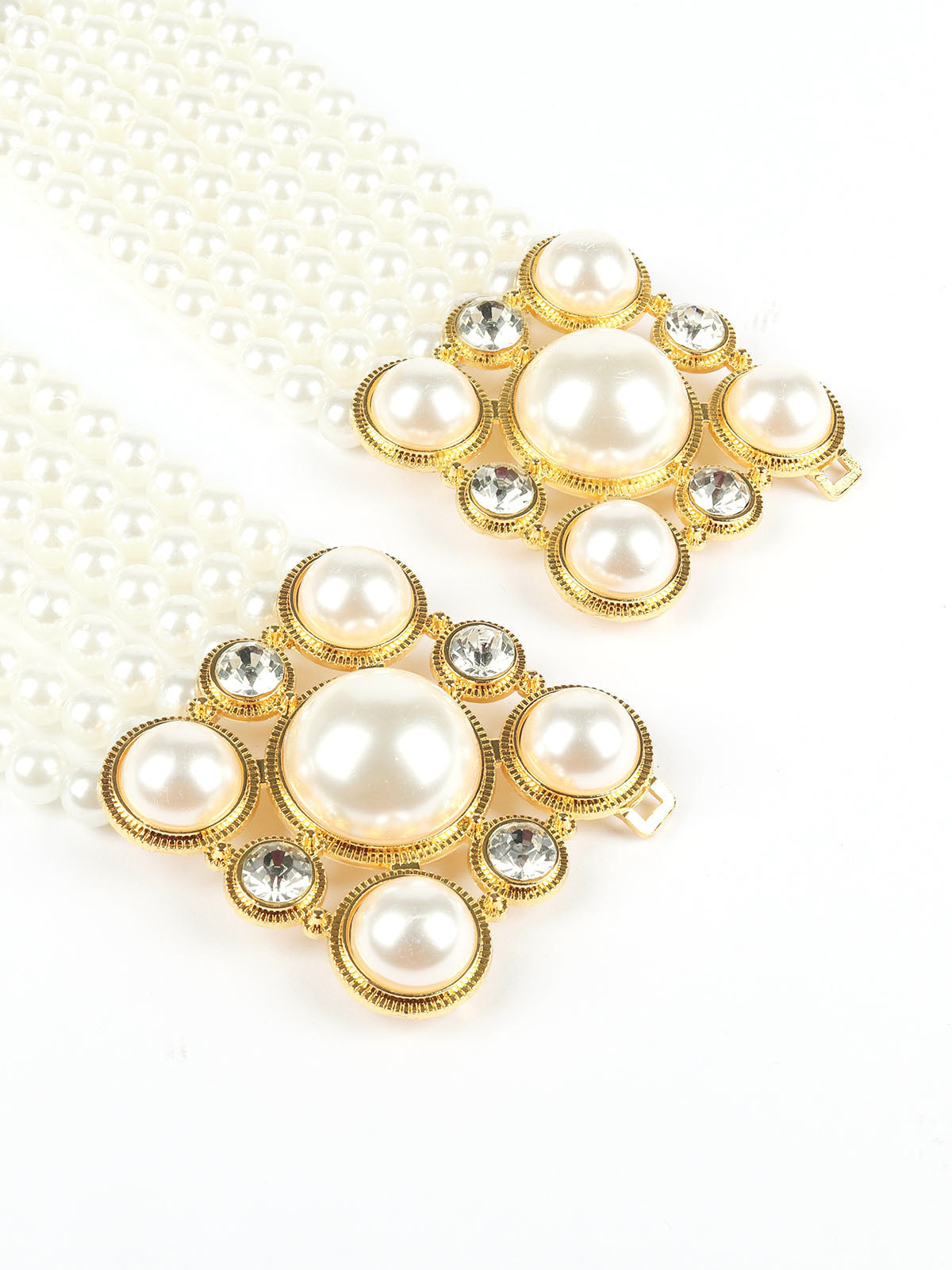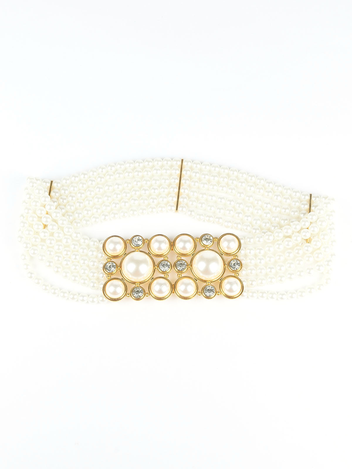 Odette White & Golden Alloy Embellished Belt For Women
