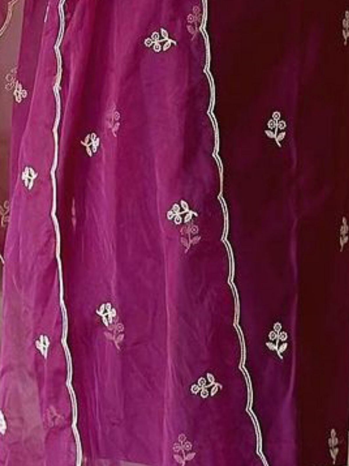 Odette Wine Silk Blend Embroidered Stiched Kurta Set For Women
