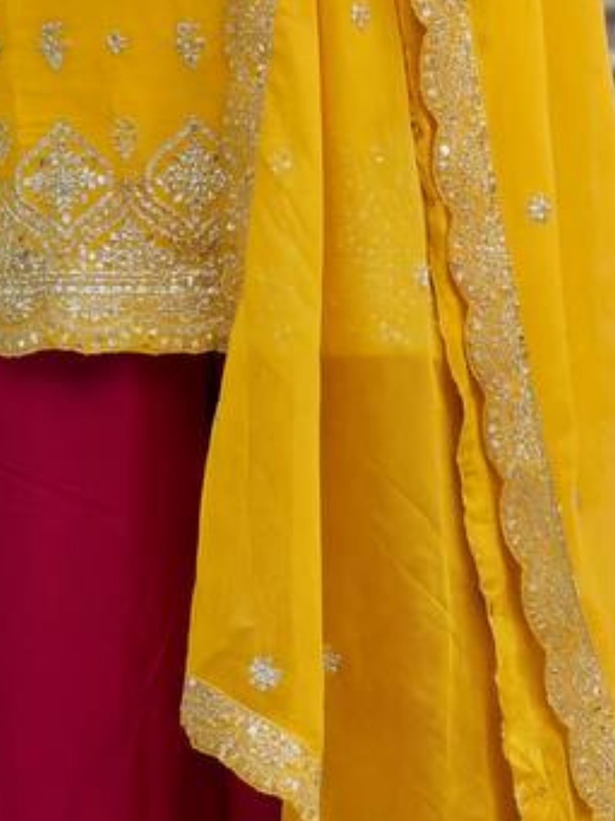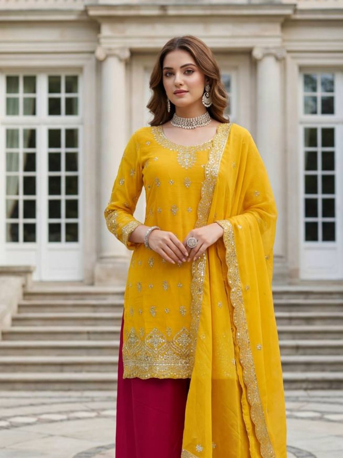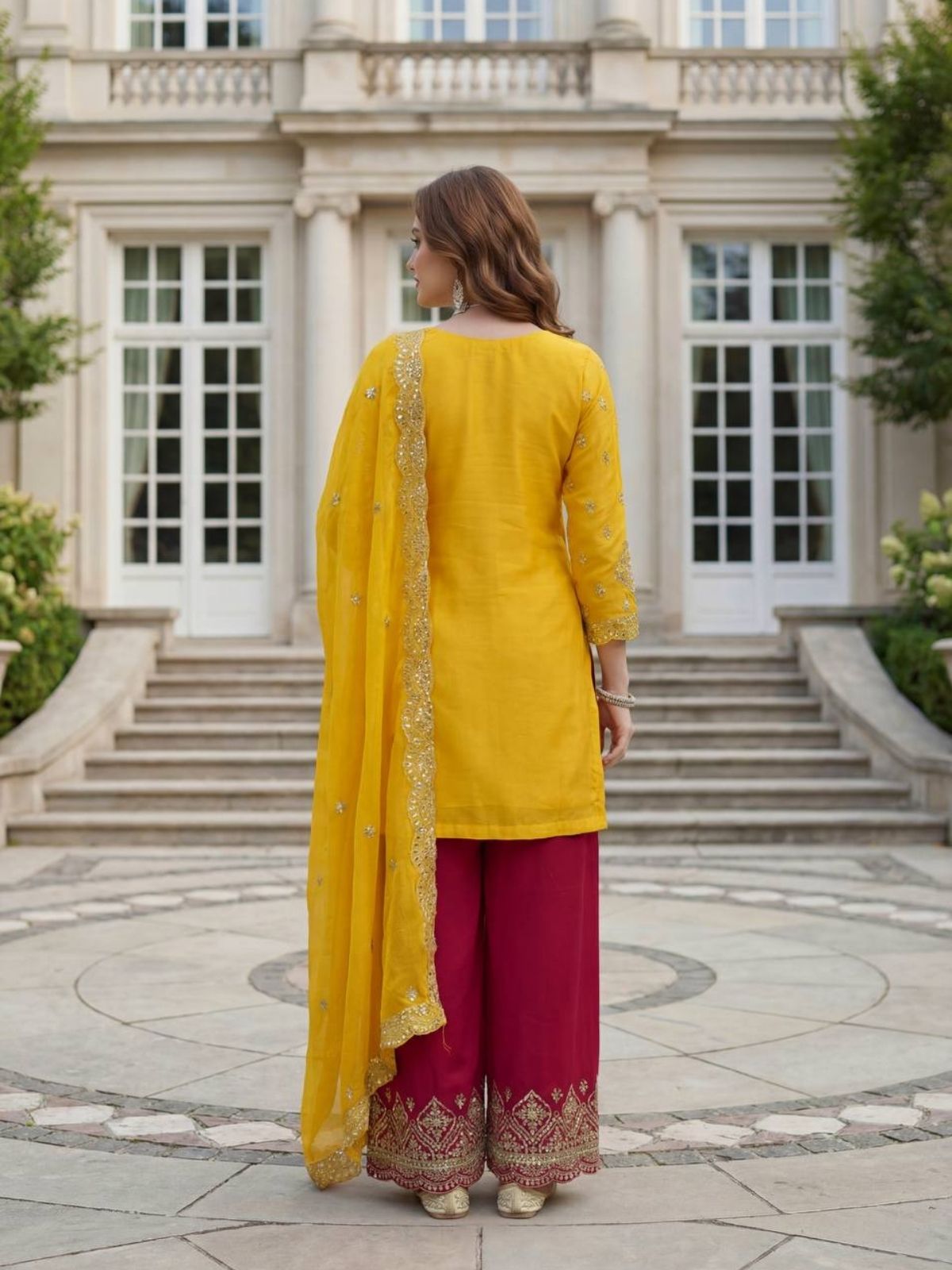Odette Yellow Chinon Solid Stitched Kurta Set For Women
