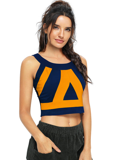 Odette Yellow and Blue Polyester Printed Top For Women