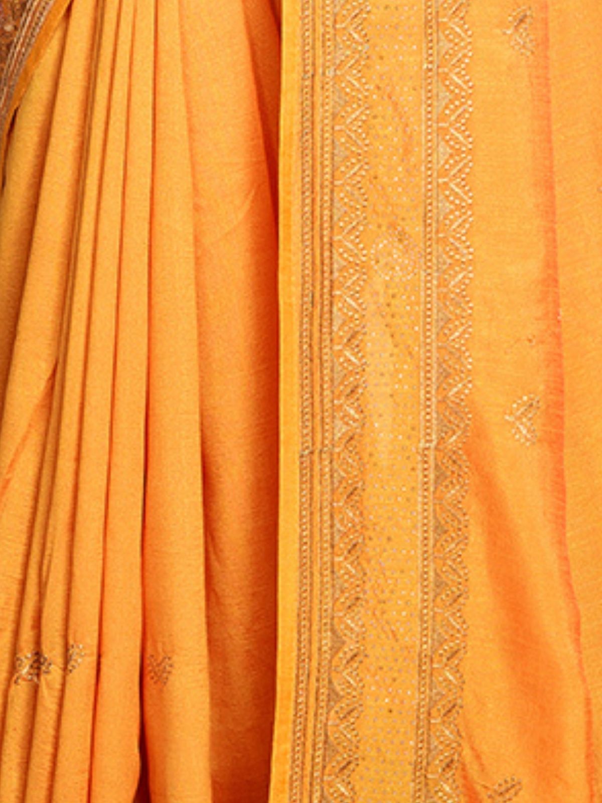 Odette Yellow Silk Blend Embroidered Saree With Unstitched Blouse For Women
