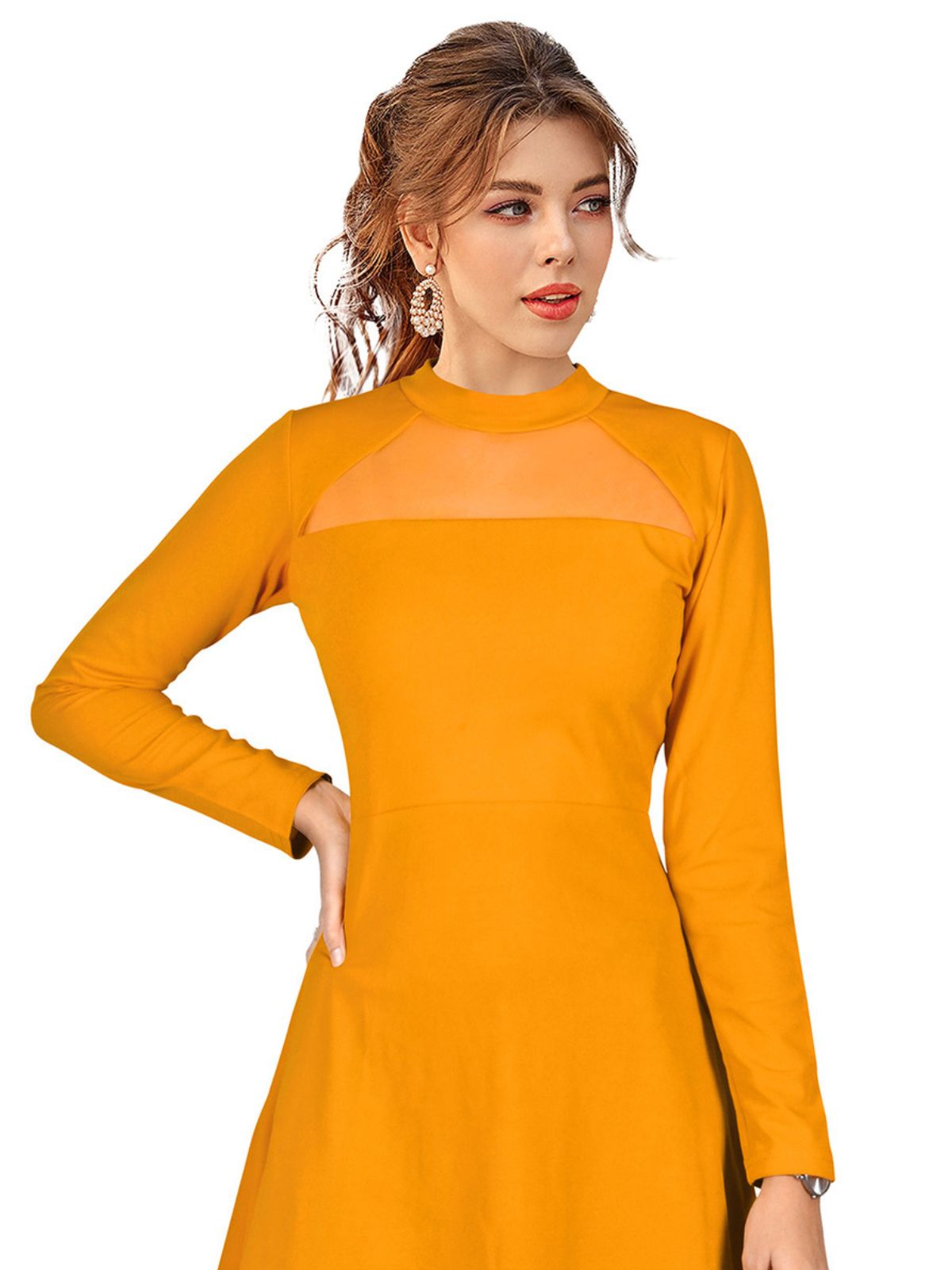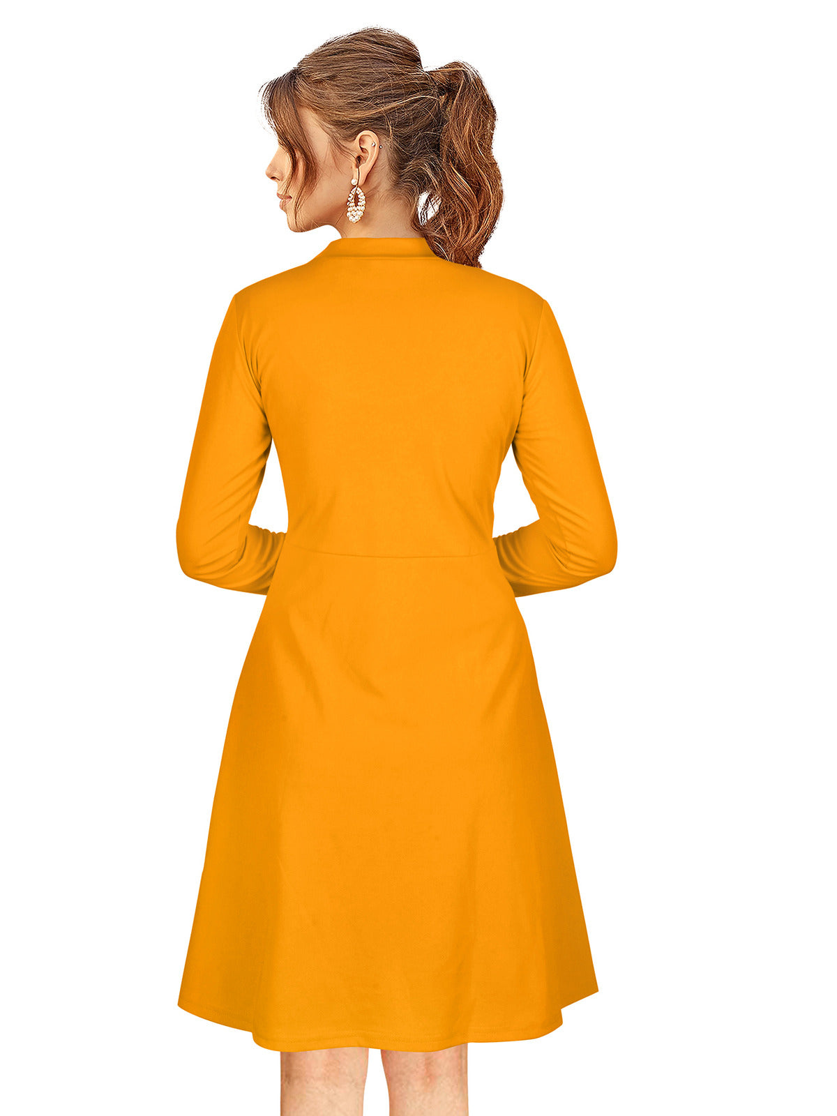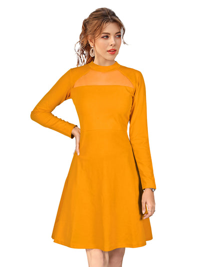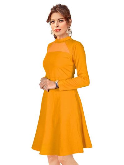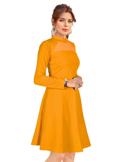Odette Yellow Skater Knit Fabric  Dress For Women