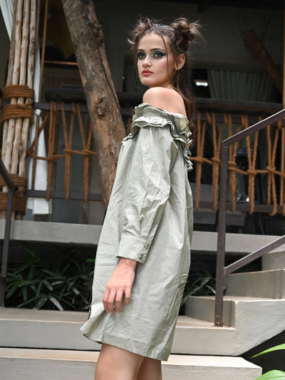 Odette Women Olive Solid Brushed Cotton Stitched Dress