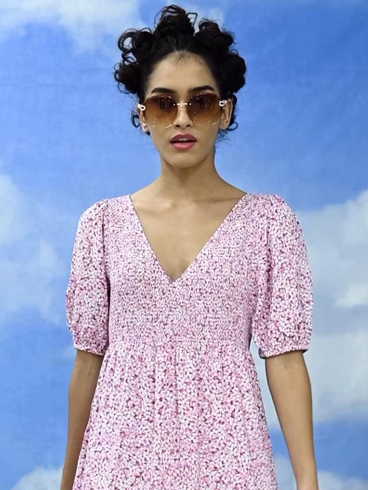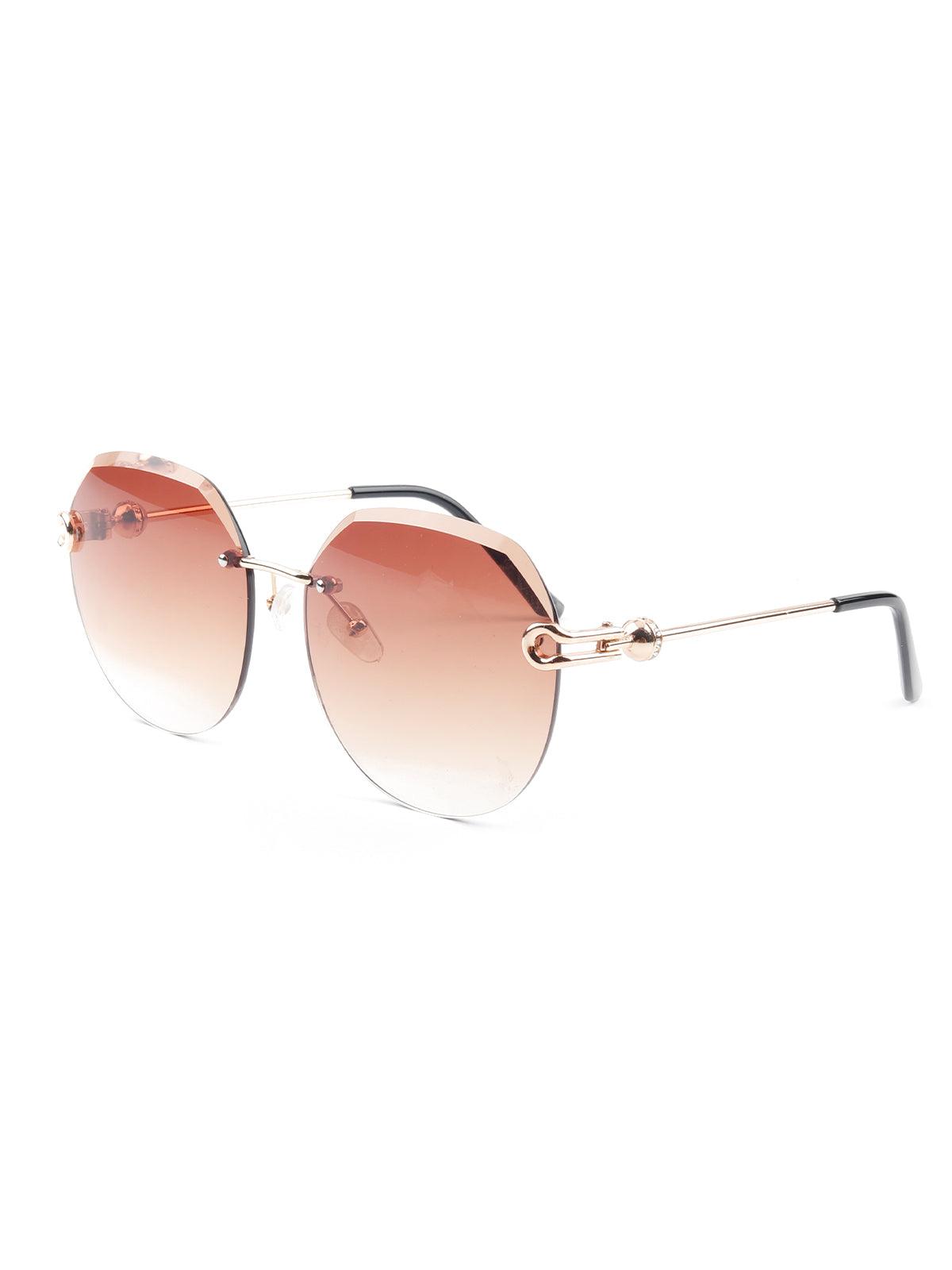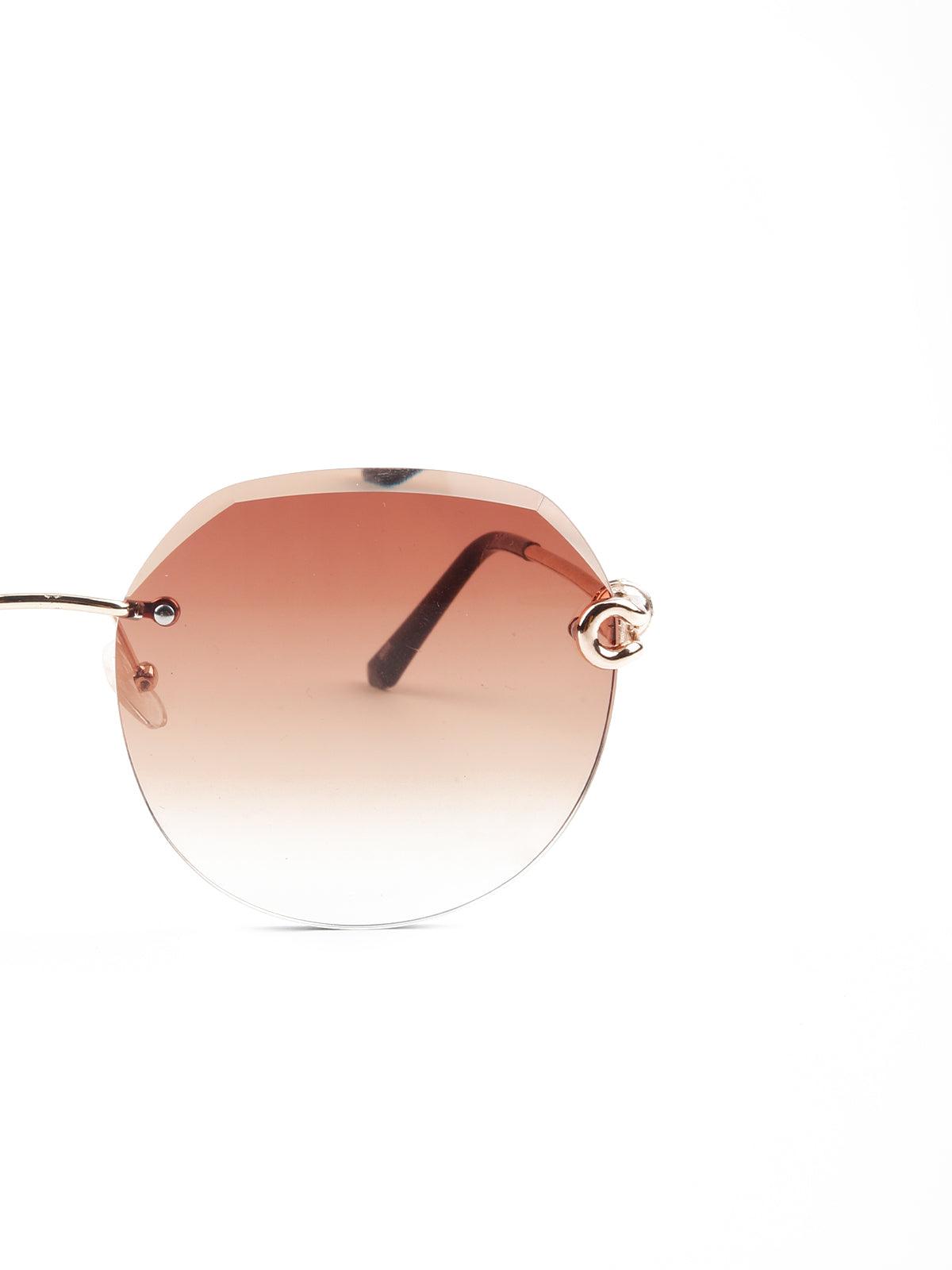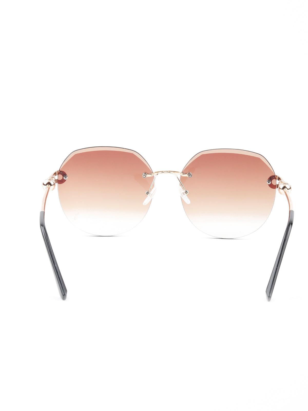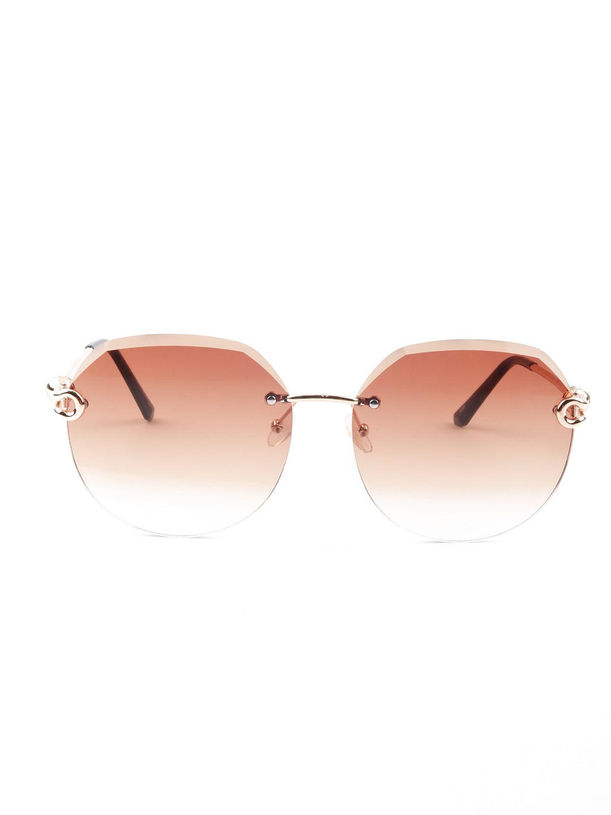 1. Balancing bold details with powerful silhouettes, these sunglasses add contrast. 2. The sunglasses come in a peach tint with a frame and metal arms and a gold-tone nose grip. 3. These sunglasses are sure to give your face a very delicate touch with their unique design. 4. It's a staple and a must-have.