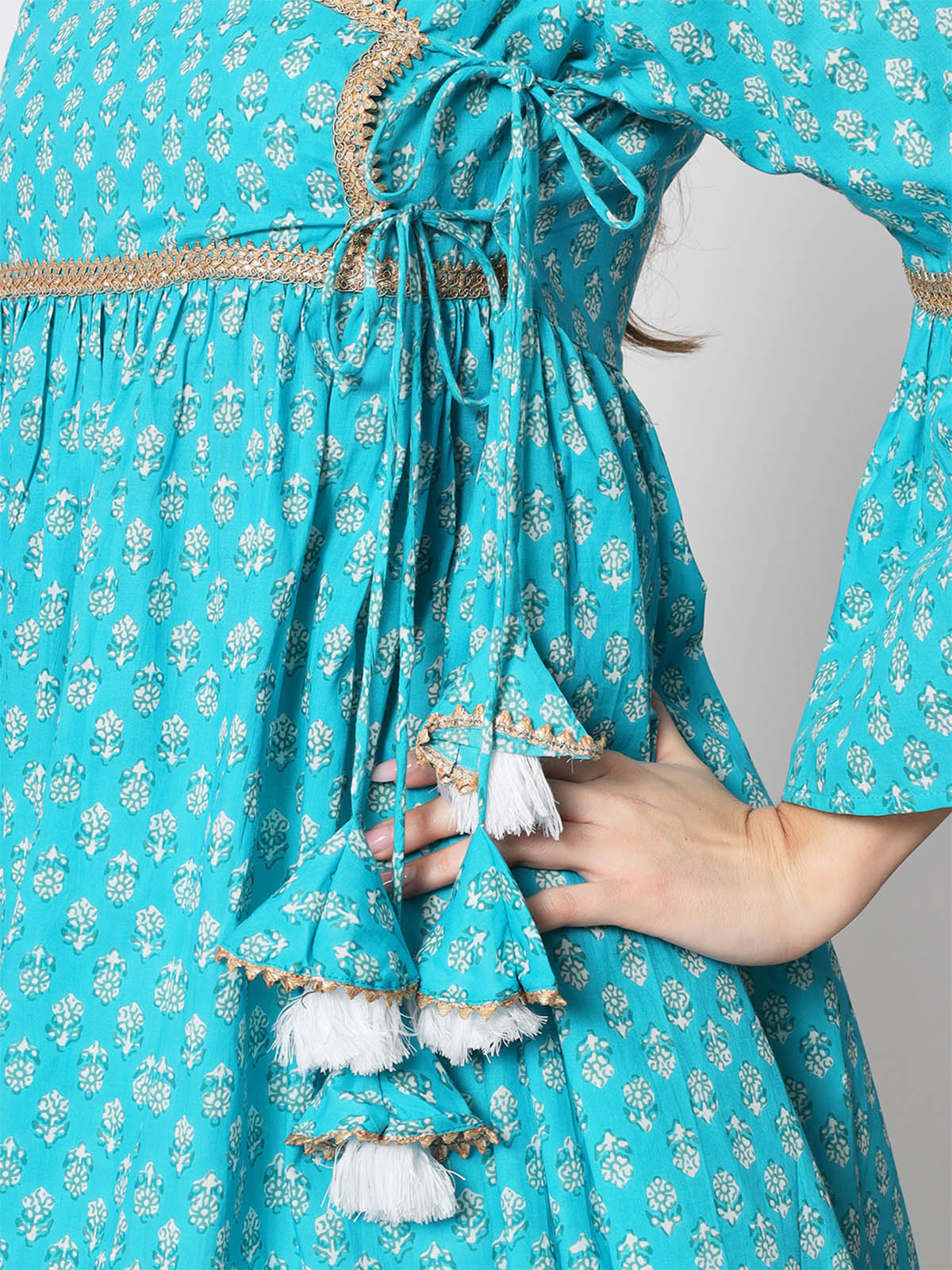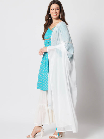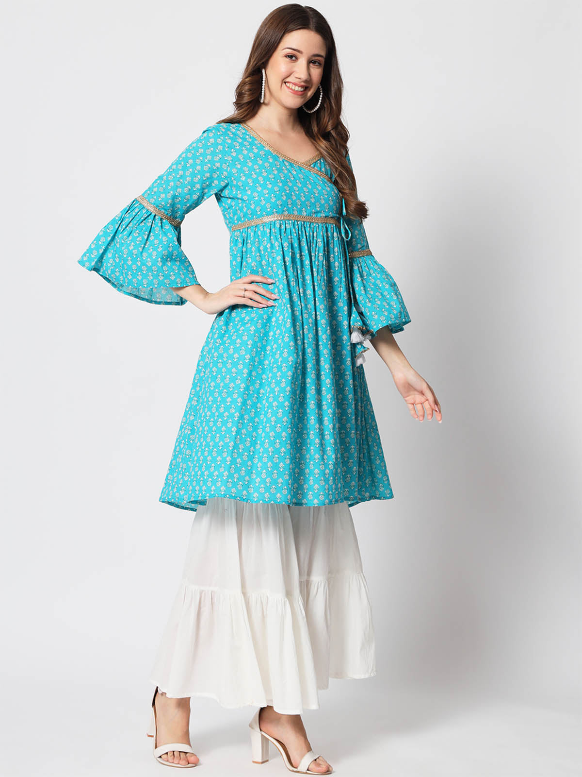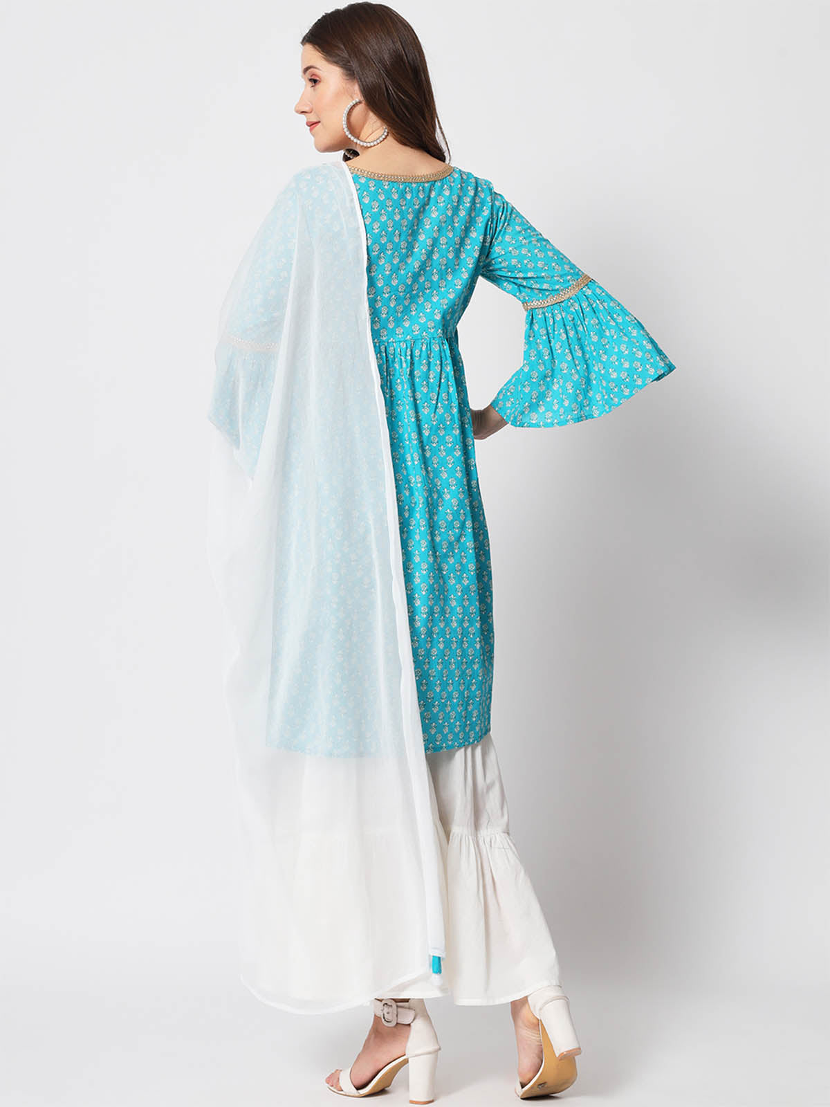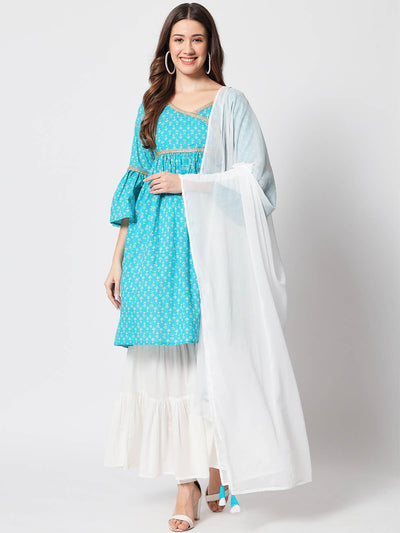 Odette - Pretty Blue Cotton Printed Stitched Kurta Set