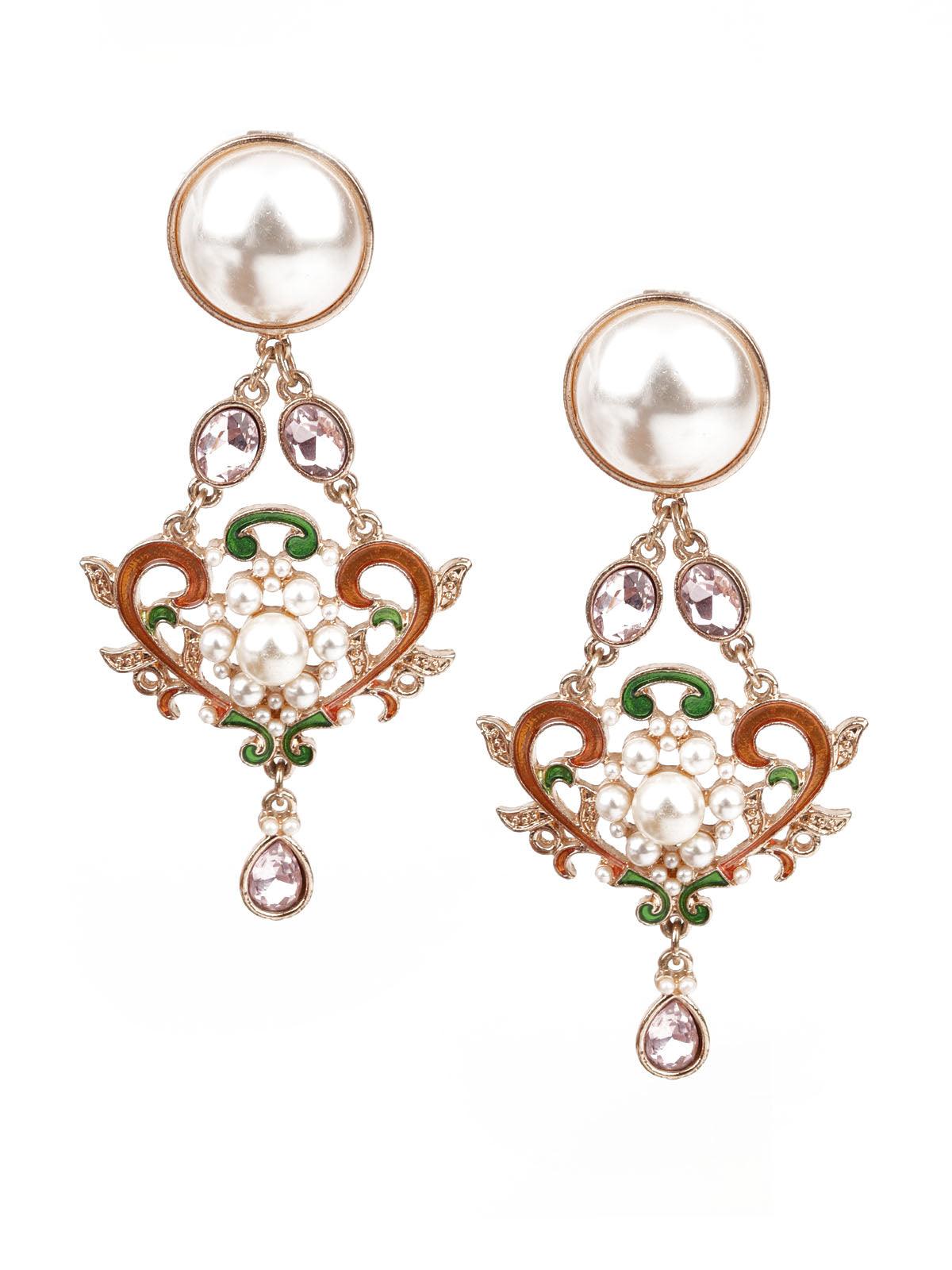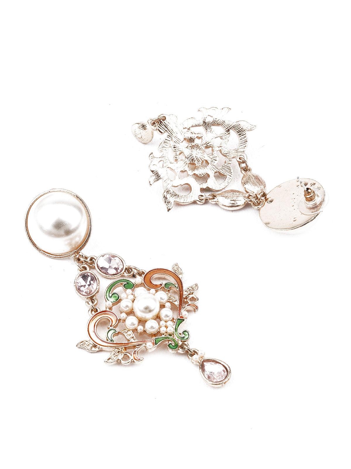 This stylish pair of pastel multicolored dangler earrings made in faux pearl is a perfect accompaniment to festive outfits or for evening outings and go well with Western and Indo-western dressing.