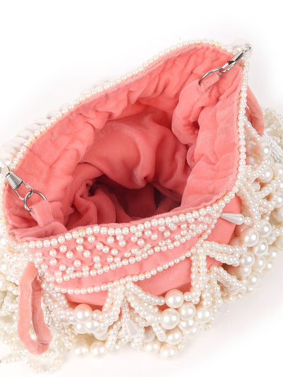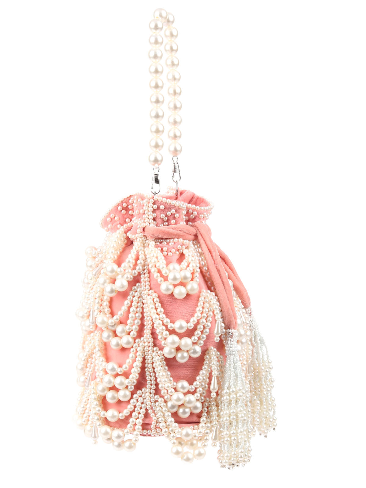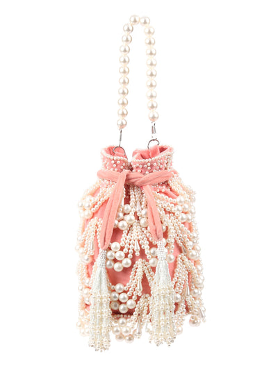 This peach colored eyecatching potli bag makes a great accompaniment to Indian ethnic dresses. The handbag has one compartment and is lined with a good quality lining.