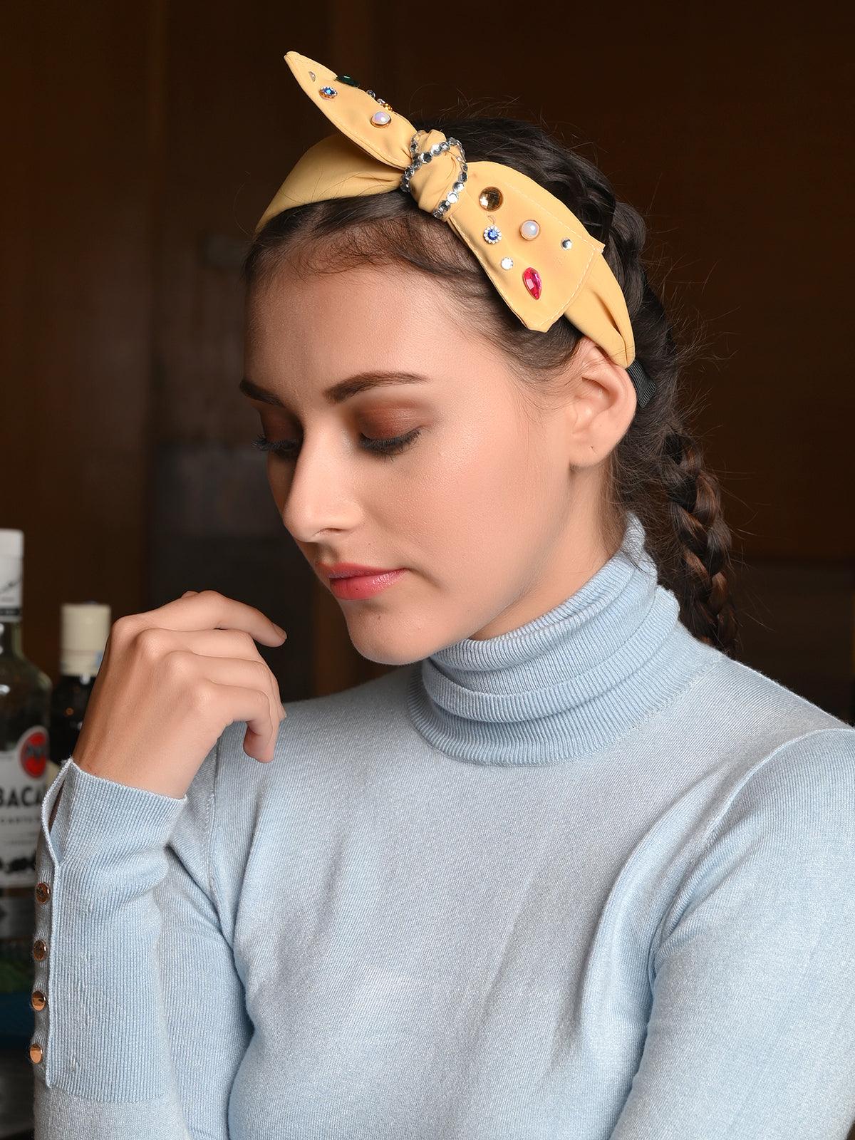 | Side Bow knot | Knot is embellished with multicolour rhine stones | Yellow | Head band | Girls | Casual | Polyester | 1 | Free | Clean with a clean, dry and soft cloth |